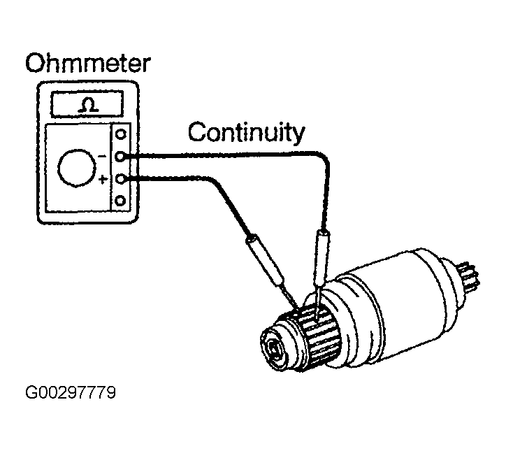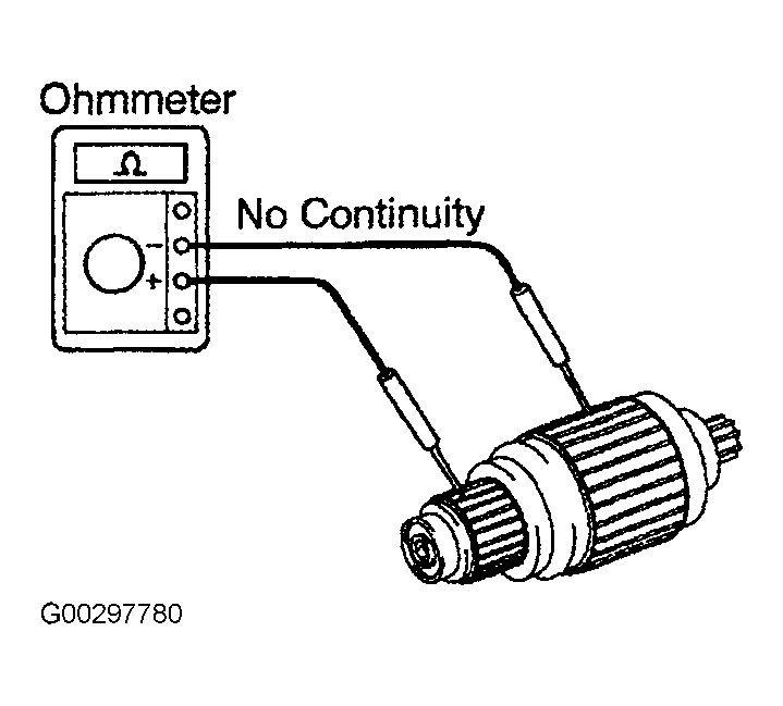 - Check the commutator for ground. Using an ohmmeter, check that there is no continuity between the commutator and armature coil core. See Fig 2. If there is continuity, replace the armature.