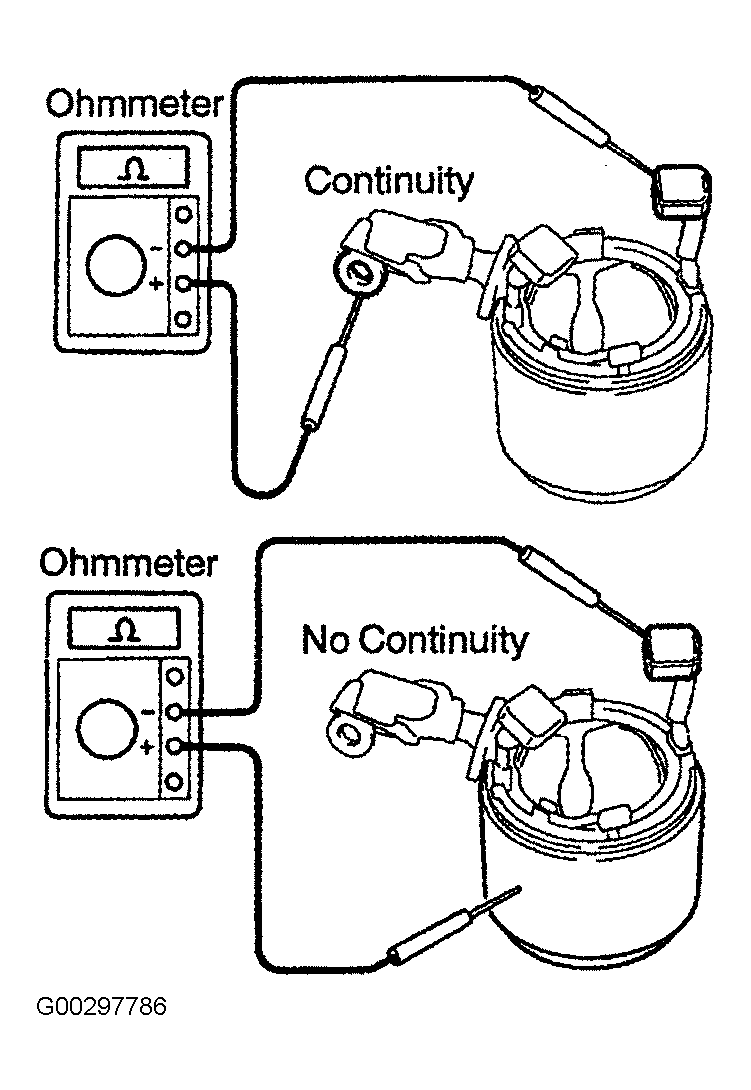 - Using an ohmmeter, verify that there is no continuity between the field coil end and field frame. If continuity is present, replace the field frame. See Fig 1.