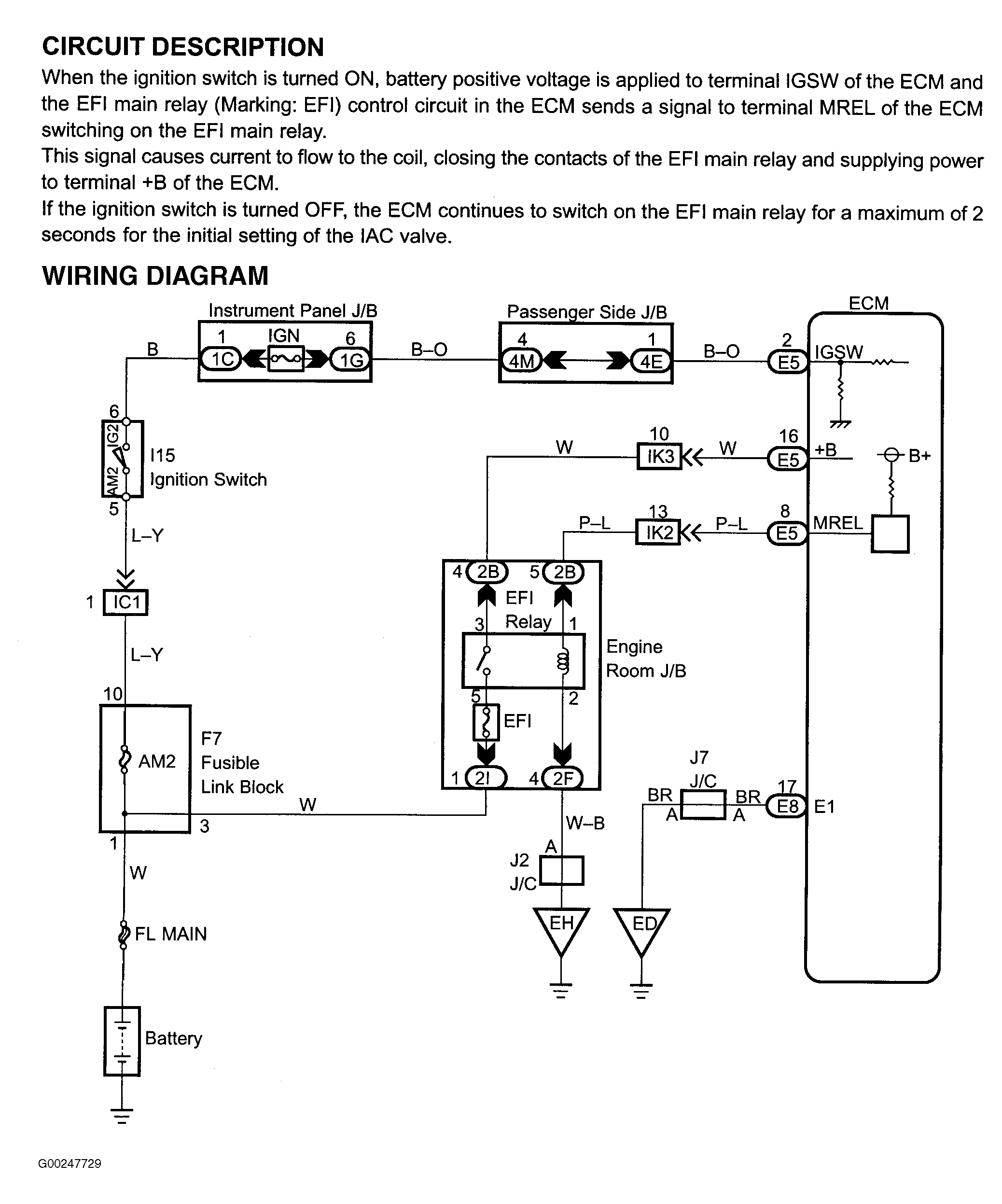 Fig 1: Engine Control Module Power Source Circuit Description & Diagram (Highlander)