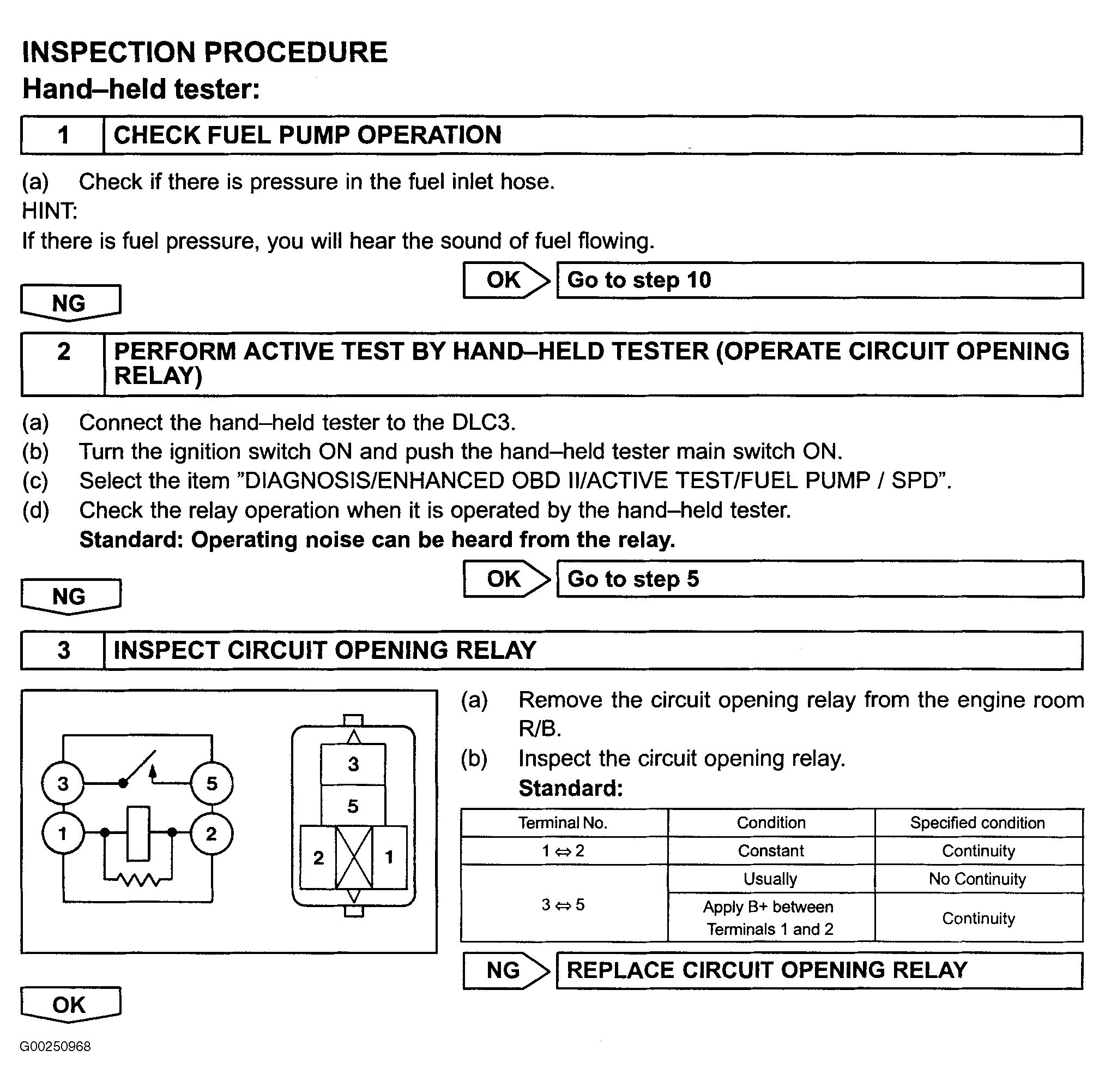 Fig 9: Fuel Pump Control Circuit Inspection Using OBD II Scan Tool - Steps 4-6 (4Runner)