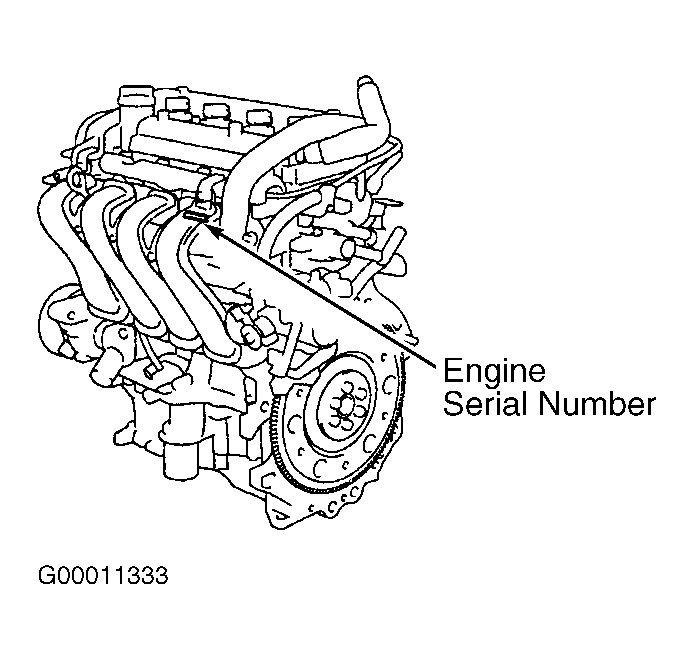 (1) Engine may be identified by Vehicle Identification Number (VIN). VIN is located on VIN plate on driver's side of instrument panel. See Figure-Figure . Engine serial number is stamped on cylinder block. See Figure-Figure .