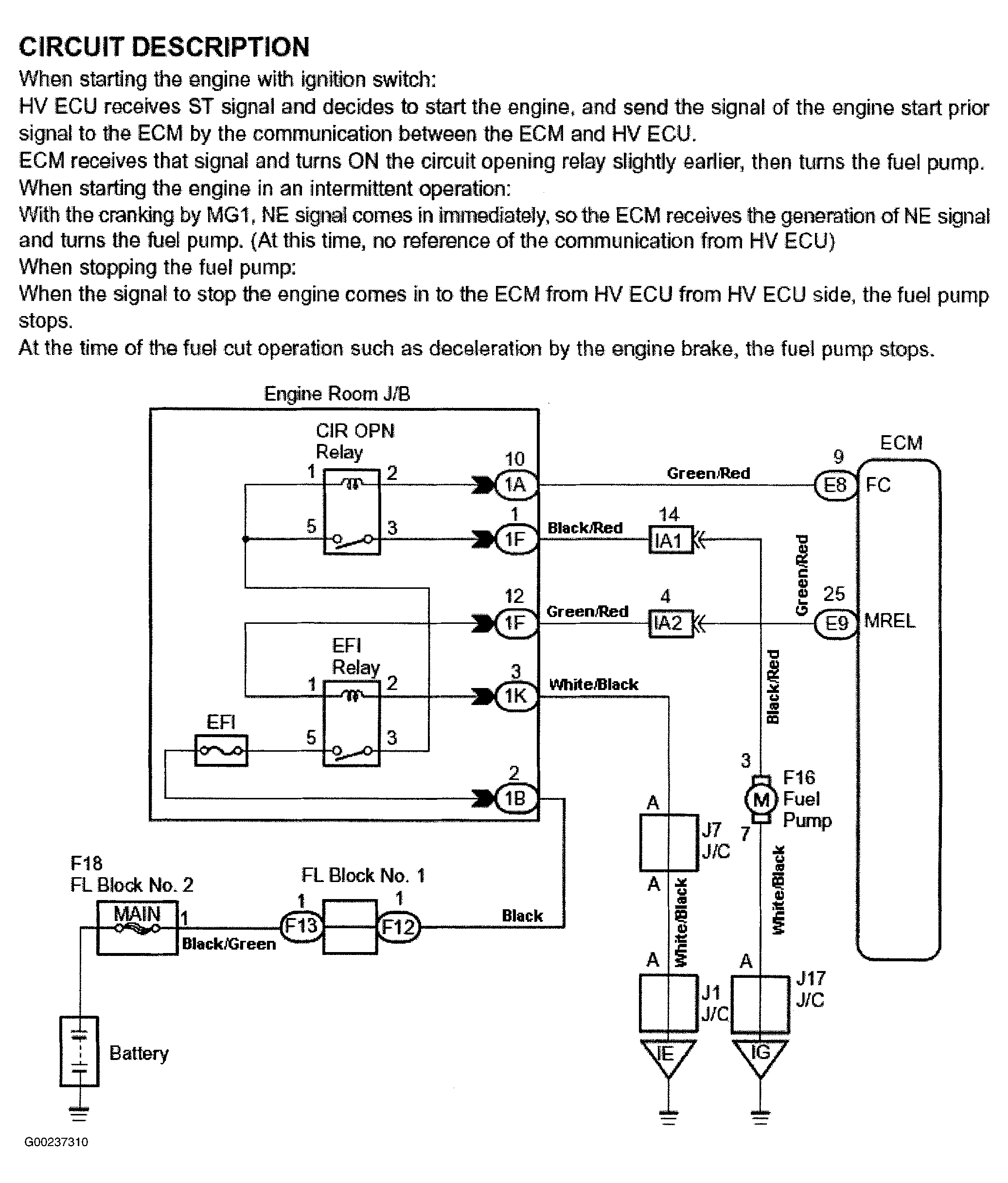 Fig 1: Fuel Pump Control Circuit Description & Diagram (Prius)
