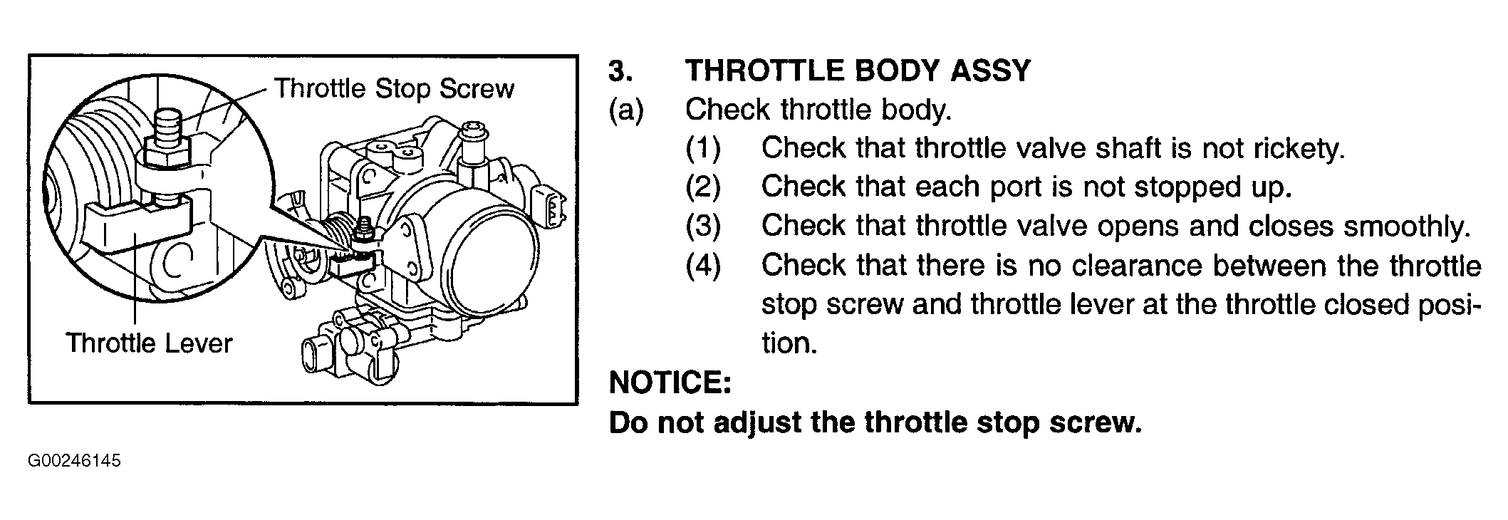 Fig 1: Inspecting Throttle Body (Corolla Shown; Matrix Is Similar)