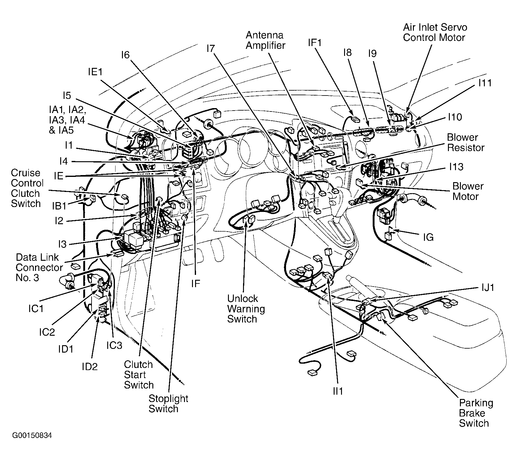 | I11 | In instrument panel harness, near breakout for air inlet control servo motor. See Figure. |
