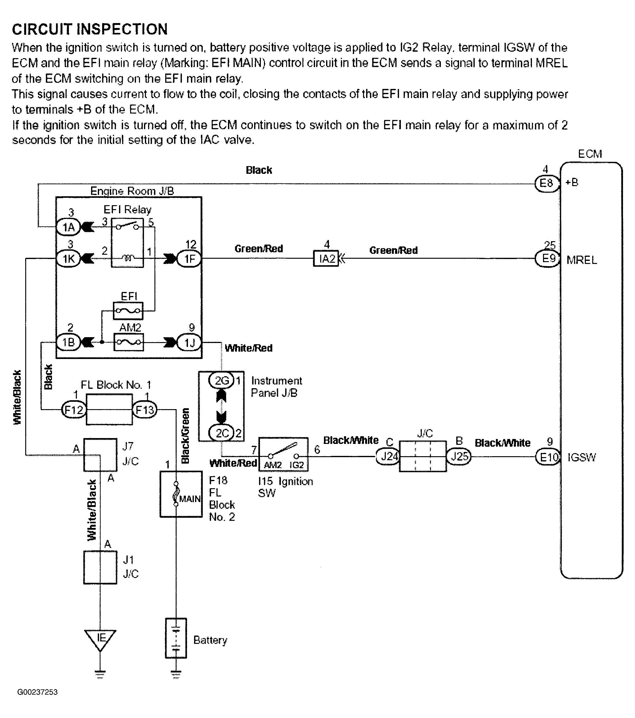 For engine control module power source circuit inspection, see Fig 1-Fig 6 . Before replacing ECM, check ECM connectors and ground circuits. See ENGINE CONTROL MODULE POWER & GROUND CIRCUITS .
