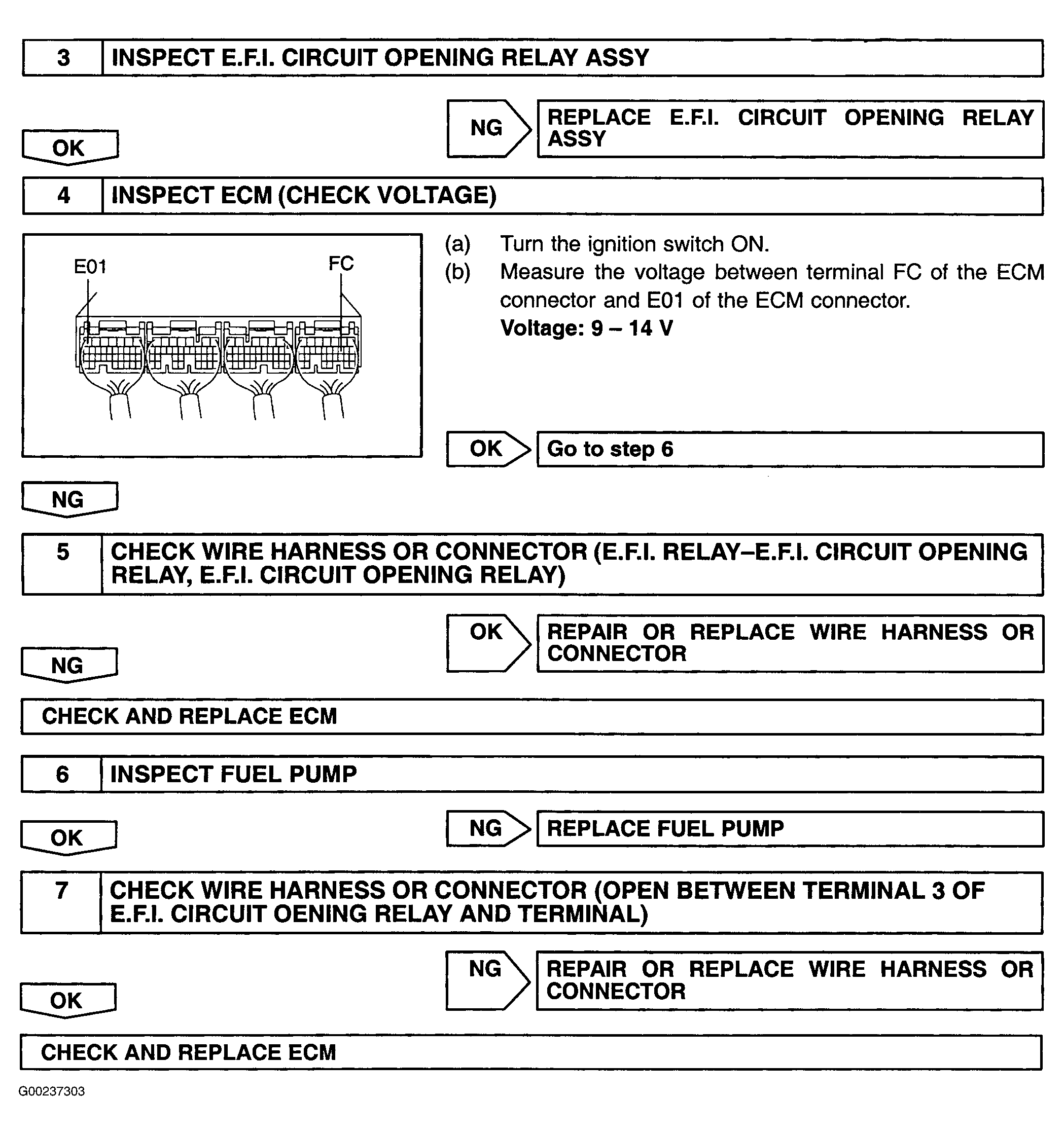 Fig 5: Fuel Pump Control Circuit Inspection Using OBD II Scan Tool - Steps 3-7 (Matrix)