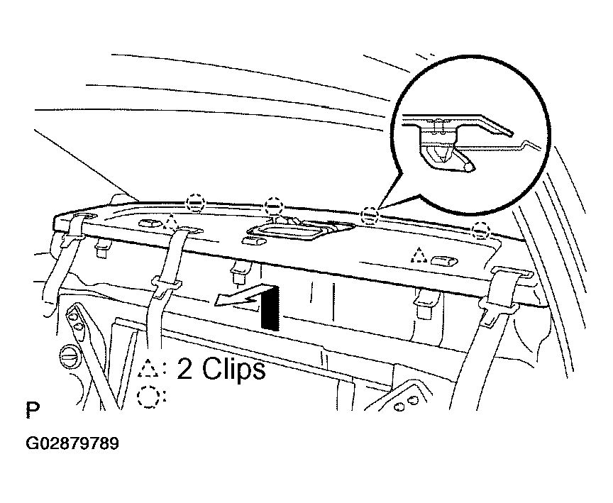 Disengage the 3 clips and remove the rear side of roof headlining.