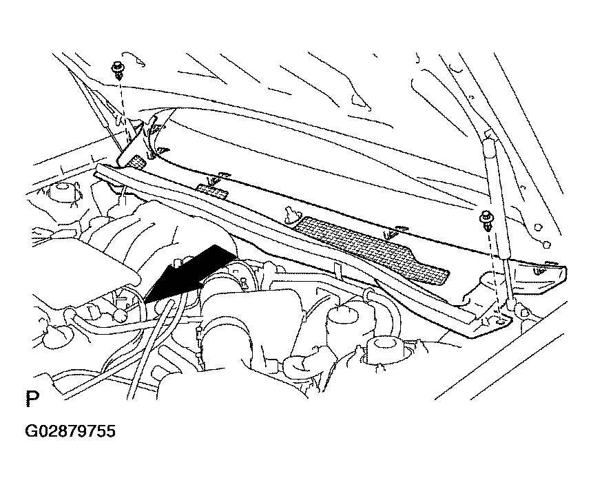 - Remove the cowl top ventilator louver as shown in Fig 4 .