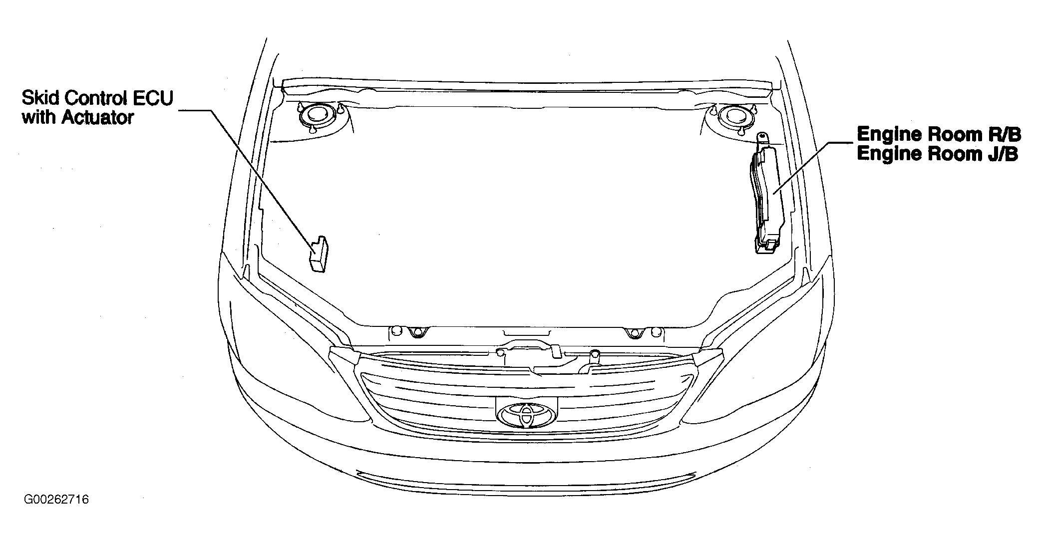 | Skid Control ECU With Actuator | At right front side of engine compartment. See Figure. |