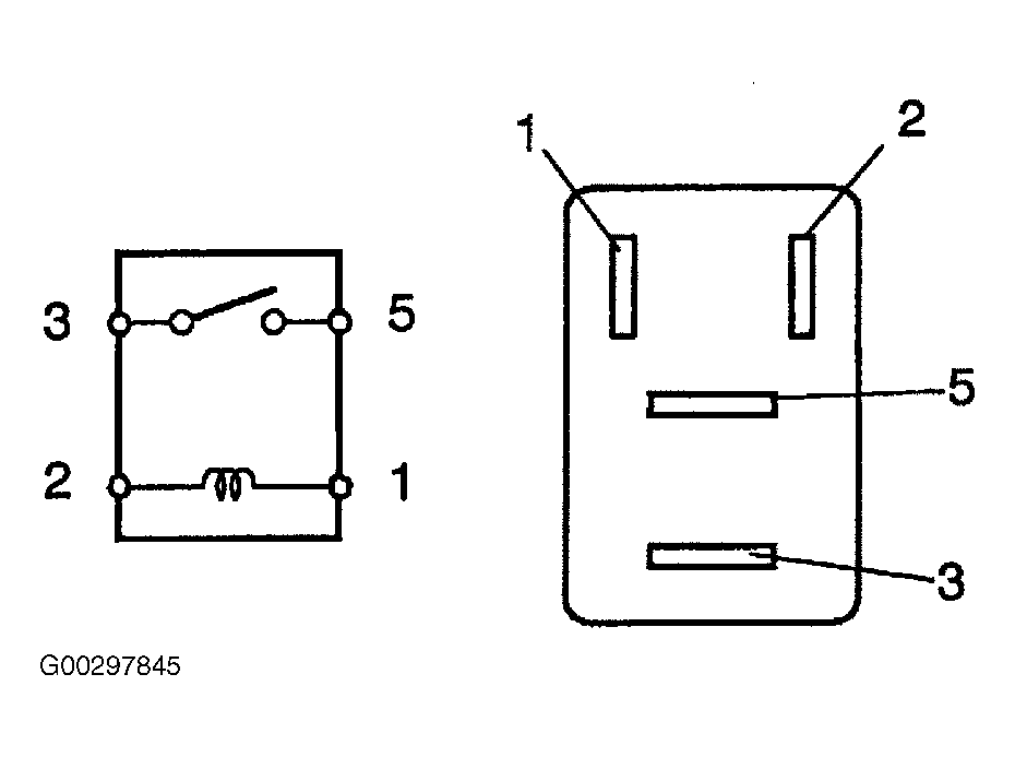 - Check relay operation by applying battery voltage through terminals No. 1 and 2. See Fig 1. Measure resistance between terminals No. 3 and 5. Ensure resistance is within specification. See STARTER RELAY CONDITIONS . If relay does not test as indicated, replace relay. If as specified, relay is good, Install relay in vehicle.
