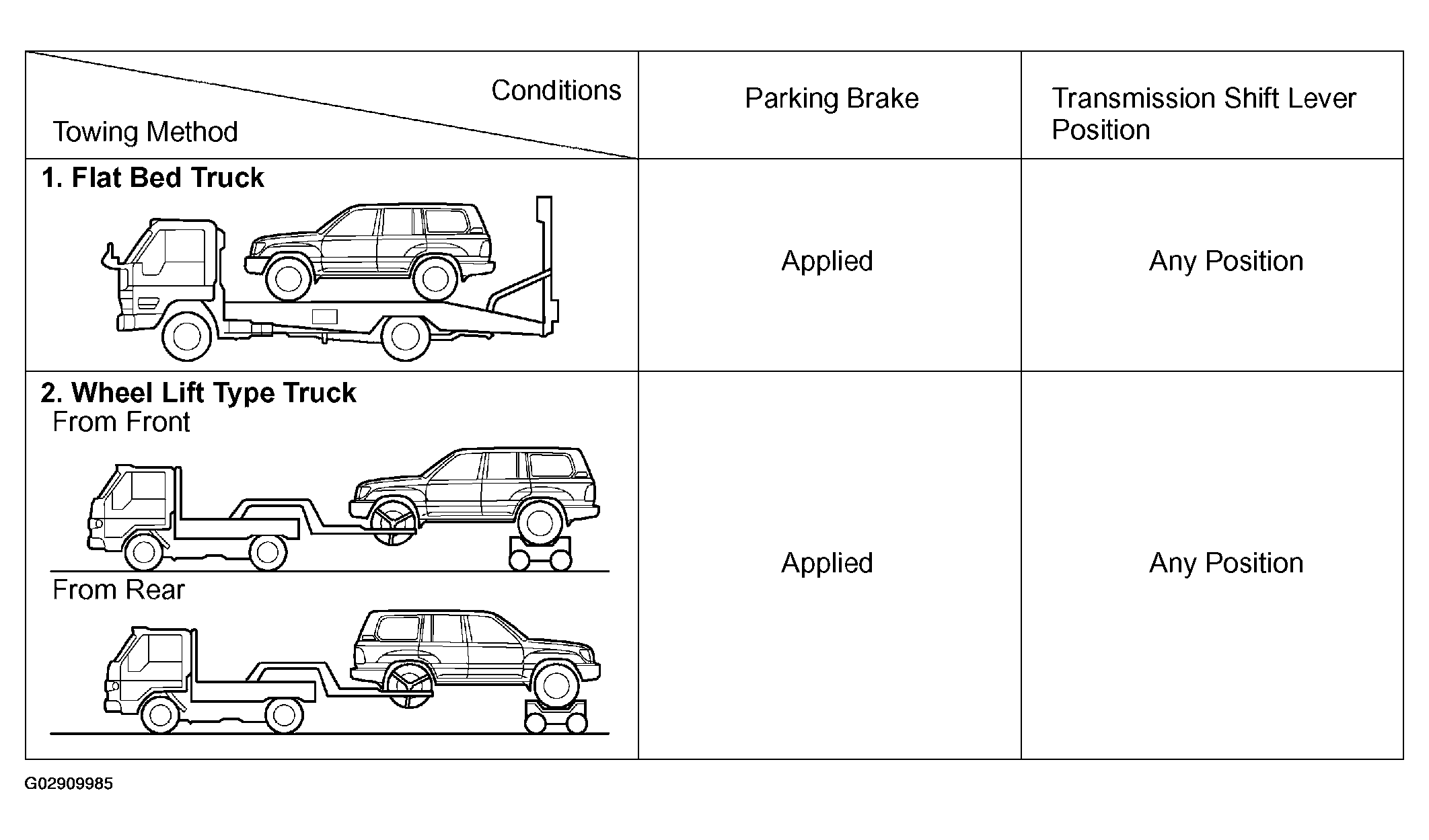 - If the vehicle has trouble in the chassis and drive train, use method 1 (flat bed truck).
