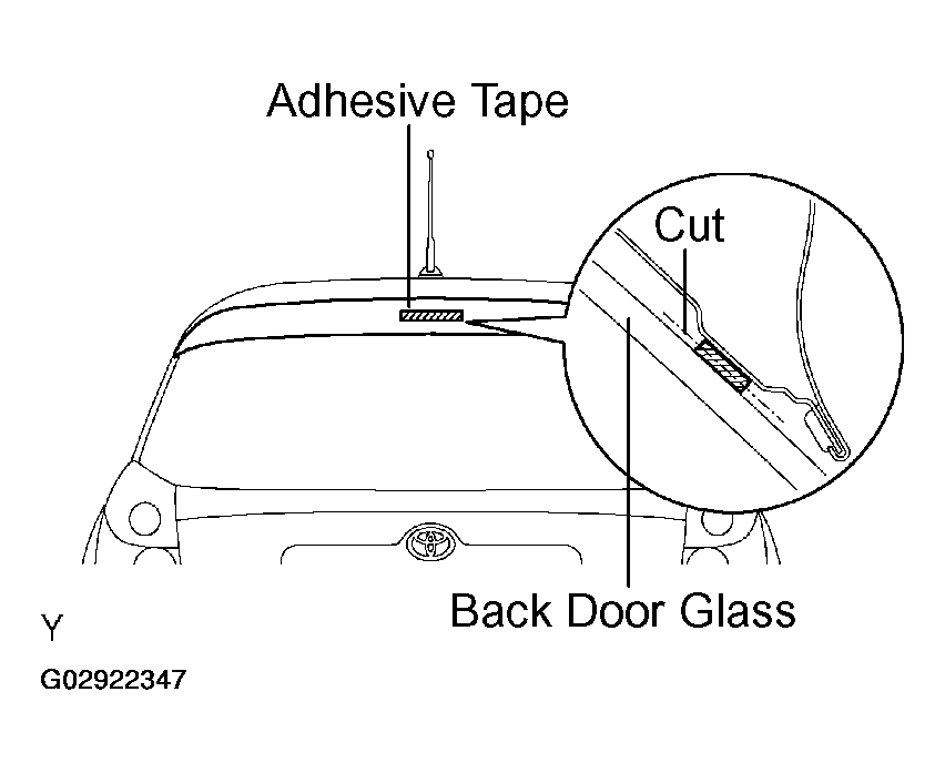 - Remove the adhesive tape from the back door panel upper outer.