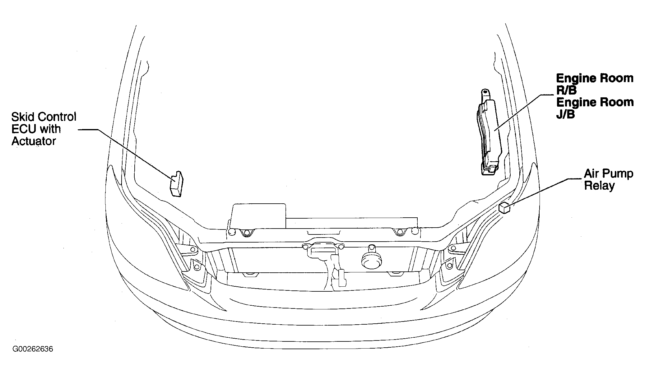 Skid Control ECU With Actuator At right front side of engine compartment. See Figure.