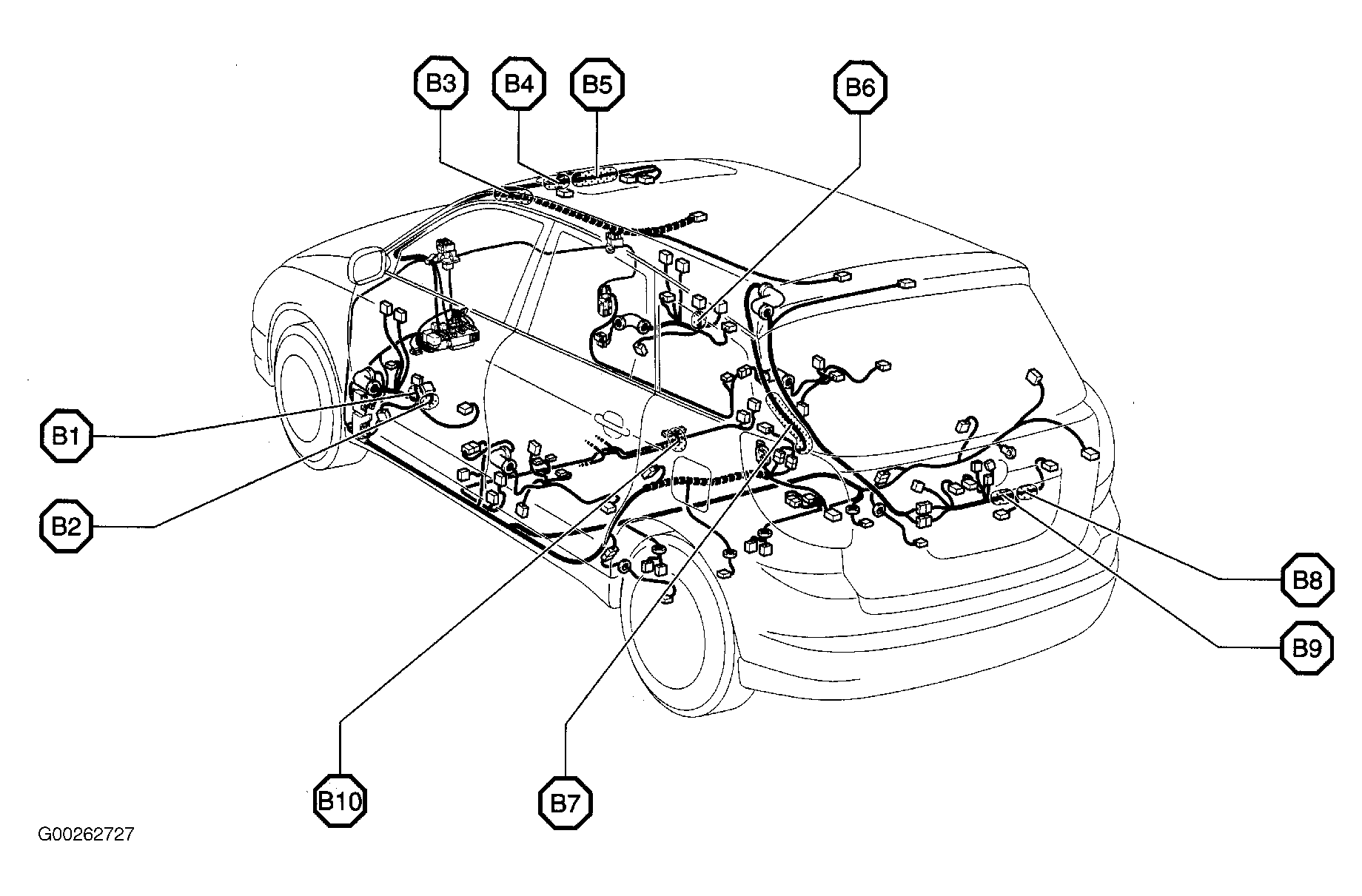 | B7 | In floor harness, at left "D" pillar. See Figure. |