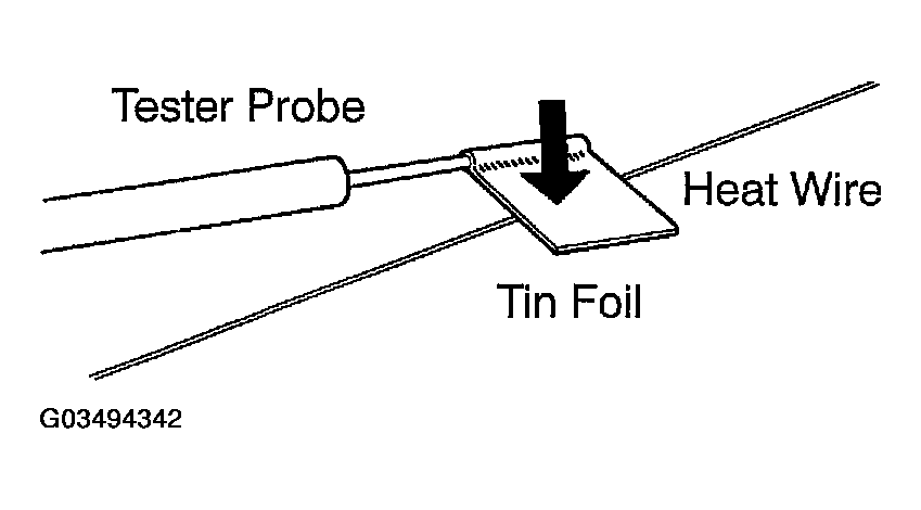 4. Place the voltmeter positive (+) lead against the defogger wire on the battery side.