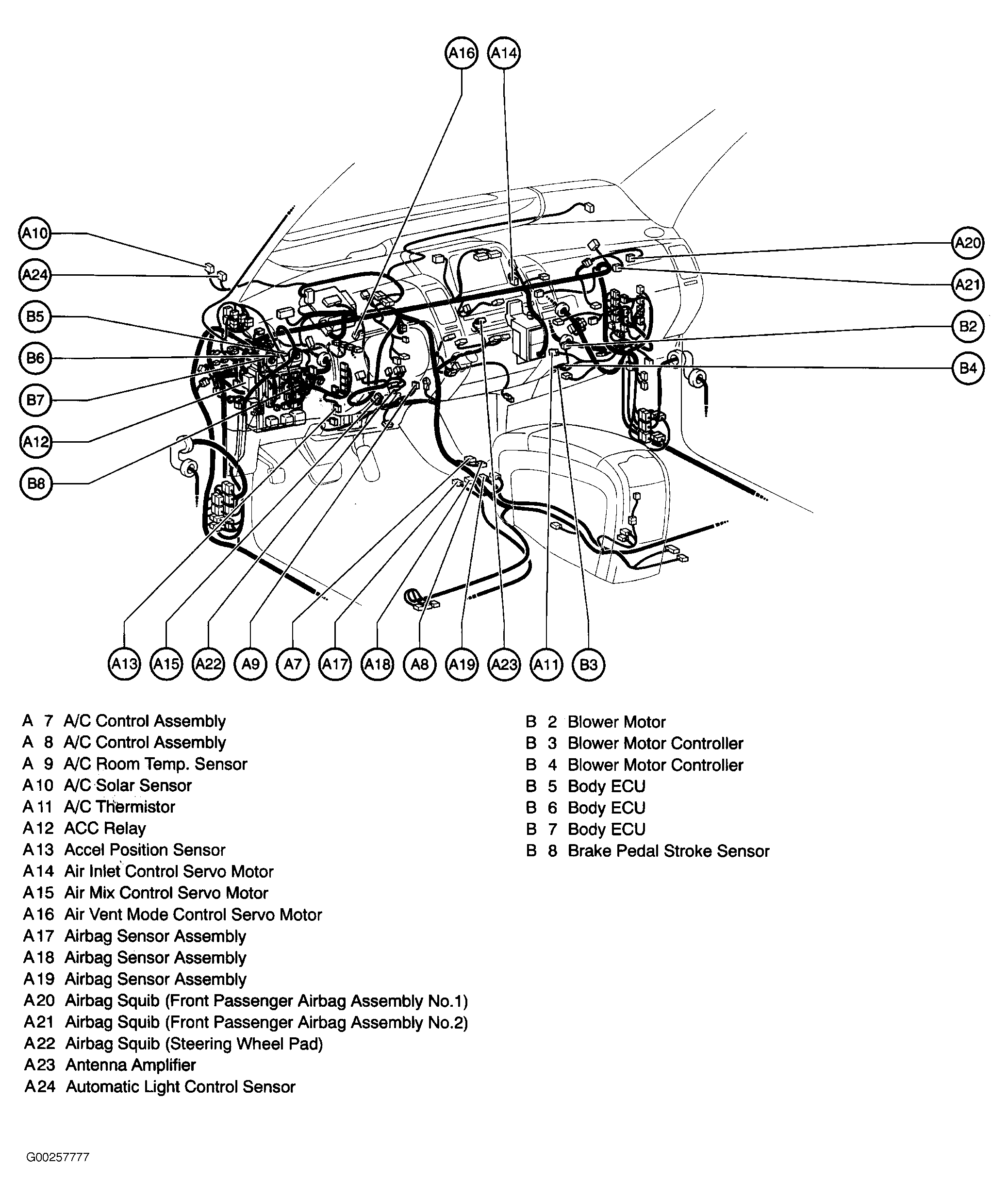 | Airbag Sensor Assembly | Behind lower center of dash. See Figure. |