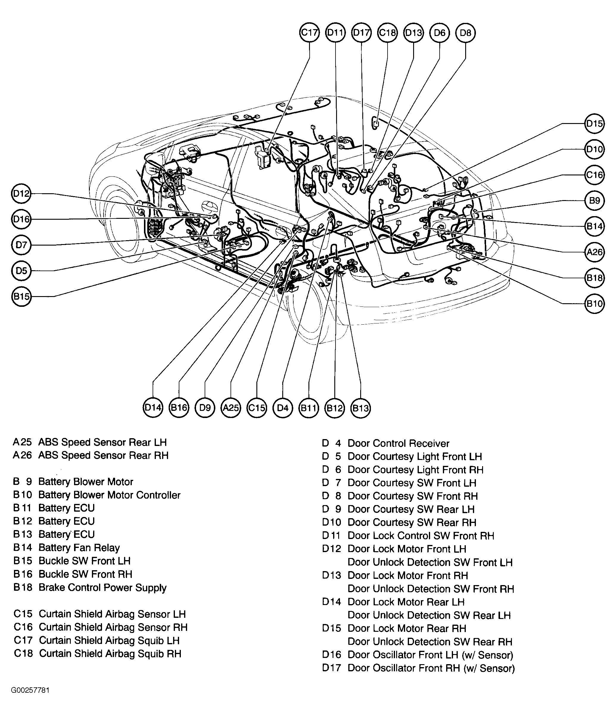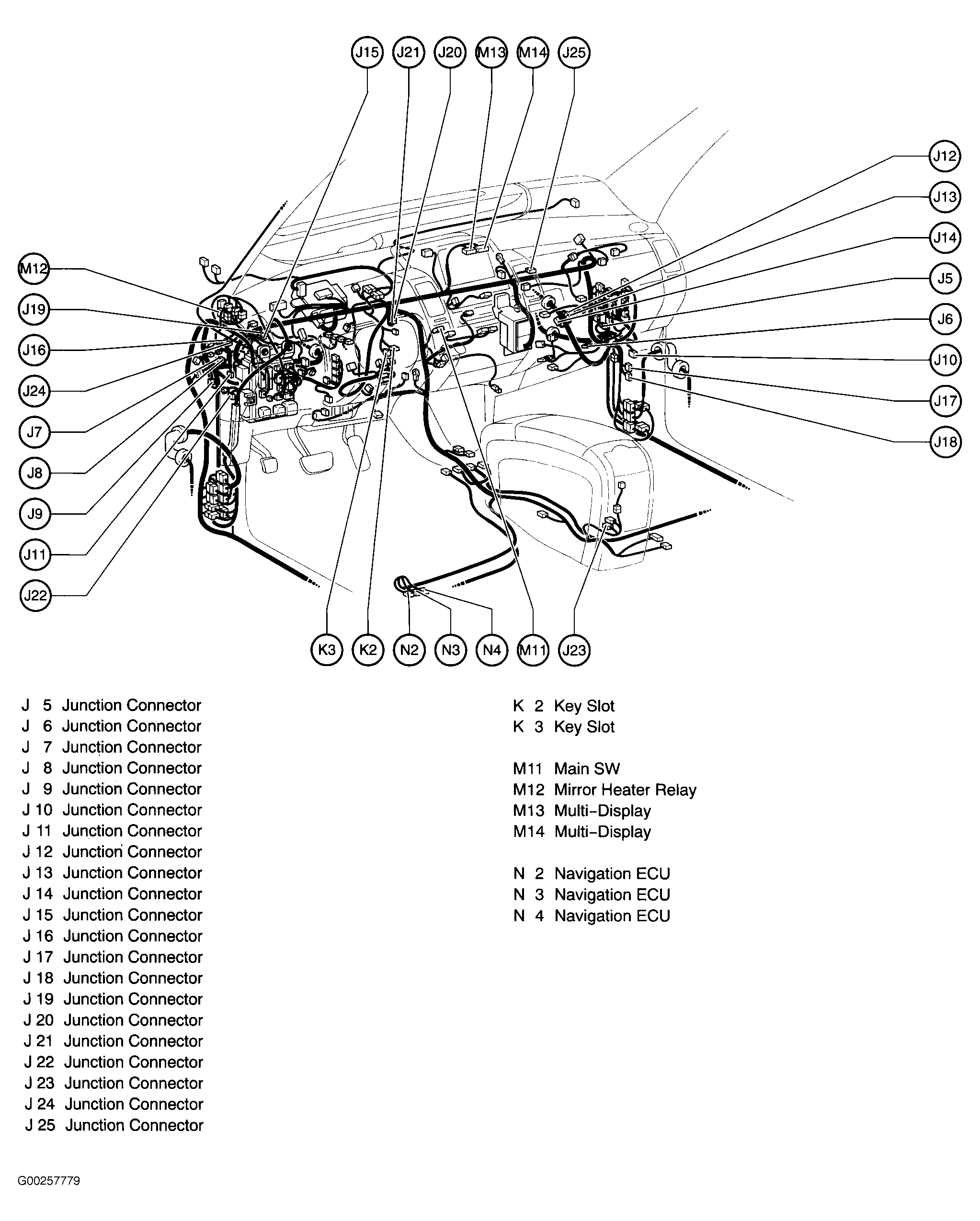 | Body ECU | On right side of instrument panel J/B. See Figure. |