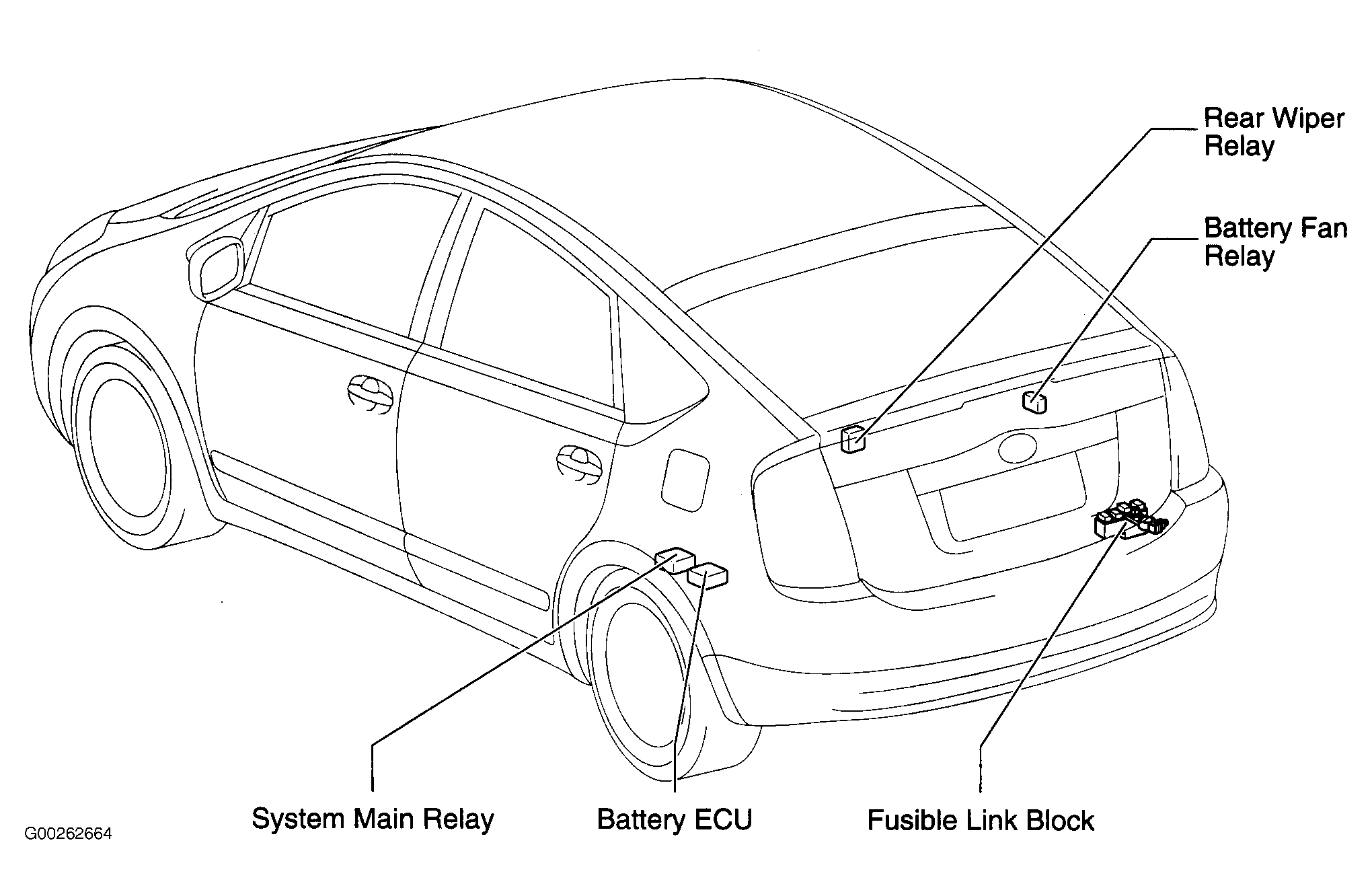 | Battery ECU | Above left rear wheelwell, near system main relay. See Figure. |