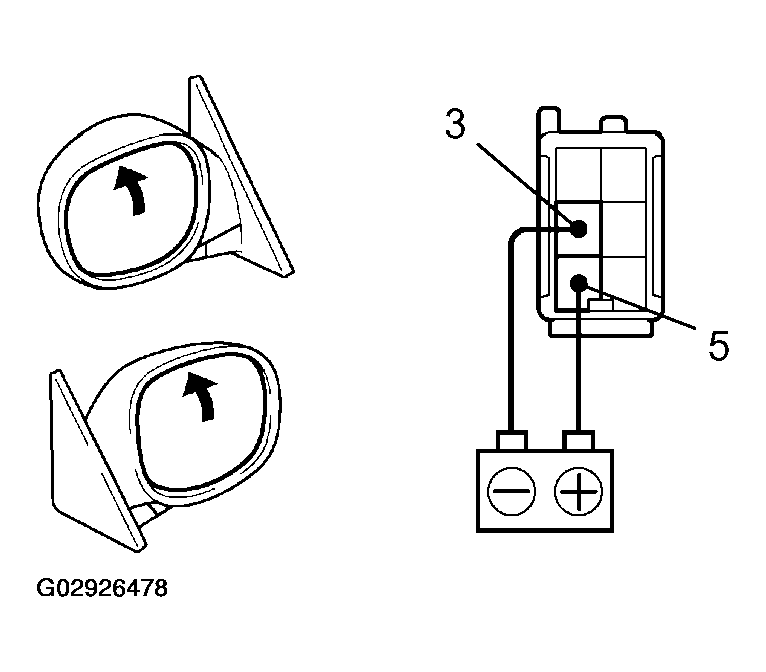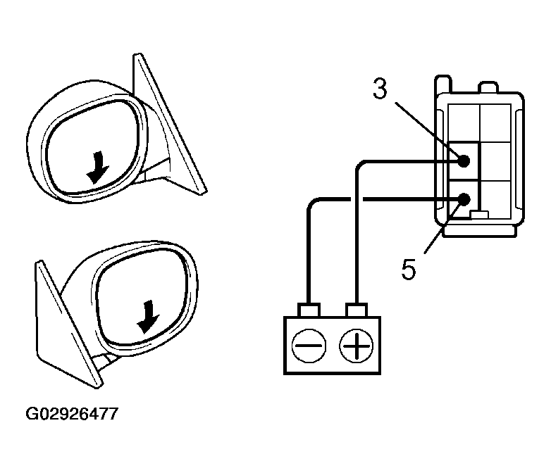 3. Connect the positive (+) lead from the battery to terminal 3 and the negative (-) lead to terminal 5. Check if the mirror angles downward, as shown in Fig 4.