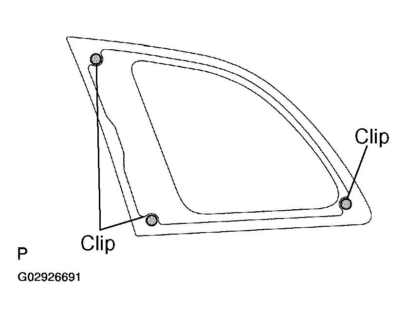 Install 3 new clips to the quarter window glass as shown in Fig 1.
