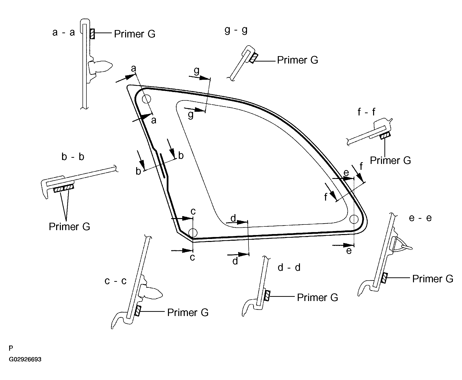 - Using a brush or sponge, coat the edge of the glass and the contact surface with Primer G as shown in Fig 3.