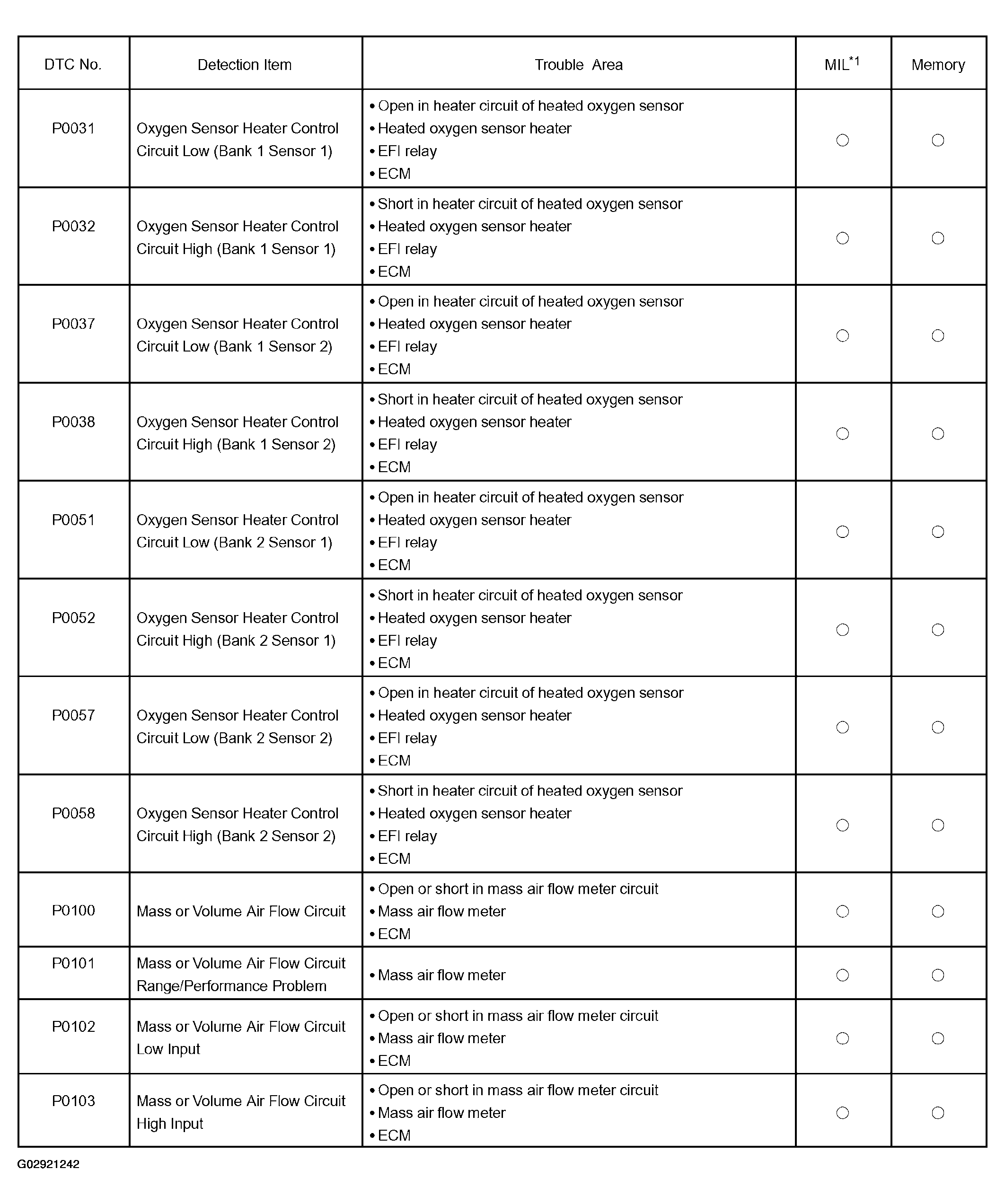 DTC P0031  OXYGEN SENSOR HEATER CONTROL CIRCUIT LOW (BANK 1 SENSOR 1)