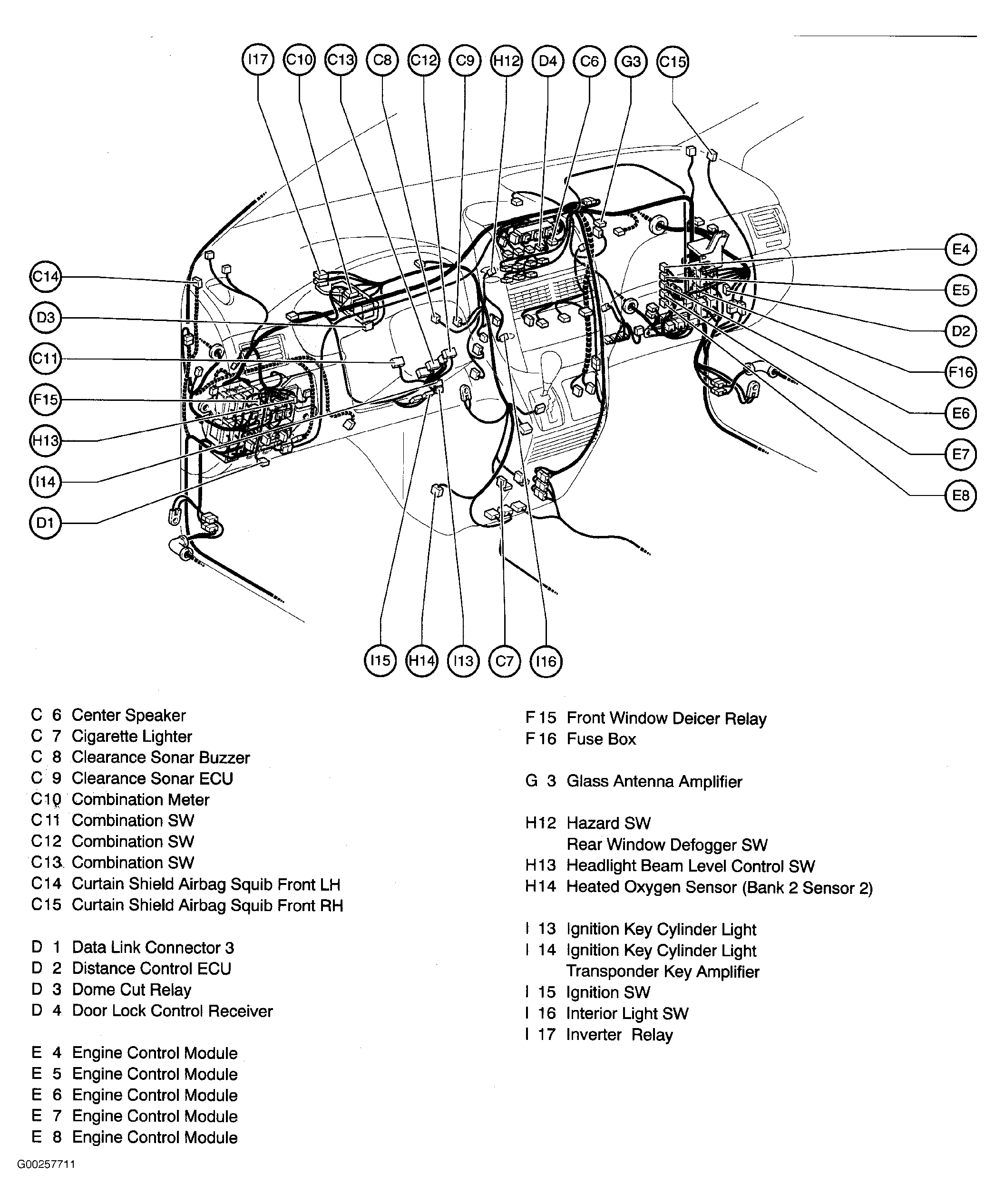 | Clearance Sonar ECU | Behind center of dash. See Figure. |