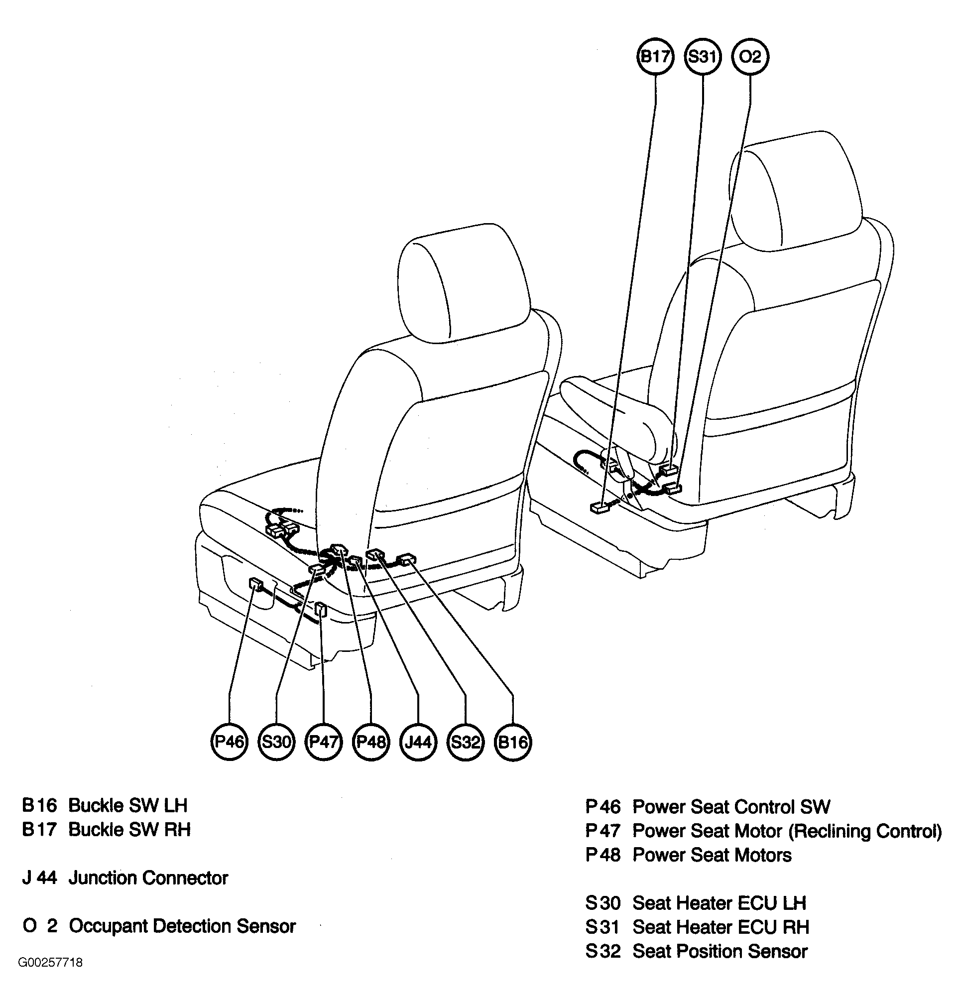 | Seat Heater ECU RH | Under right front seat. See Figure. |