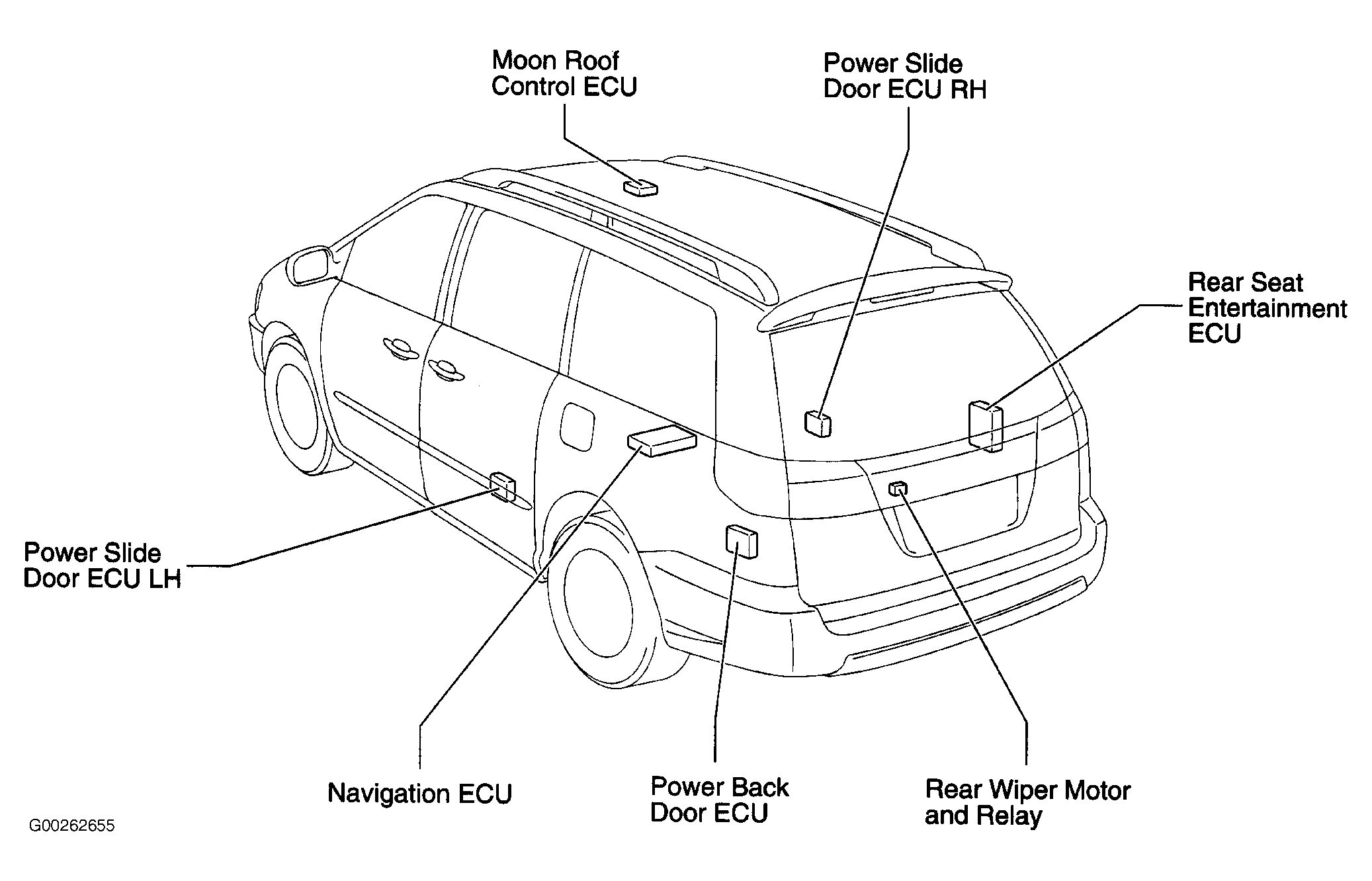| Power Slide Door ECU LH | In left siding door. See Figure. |