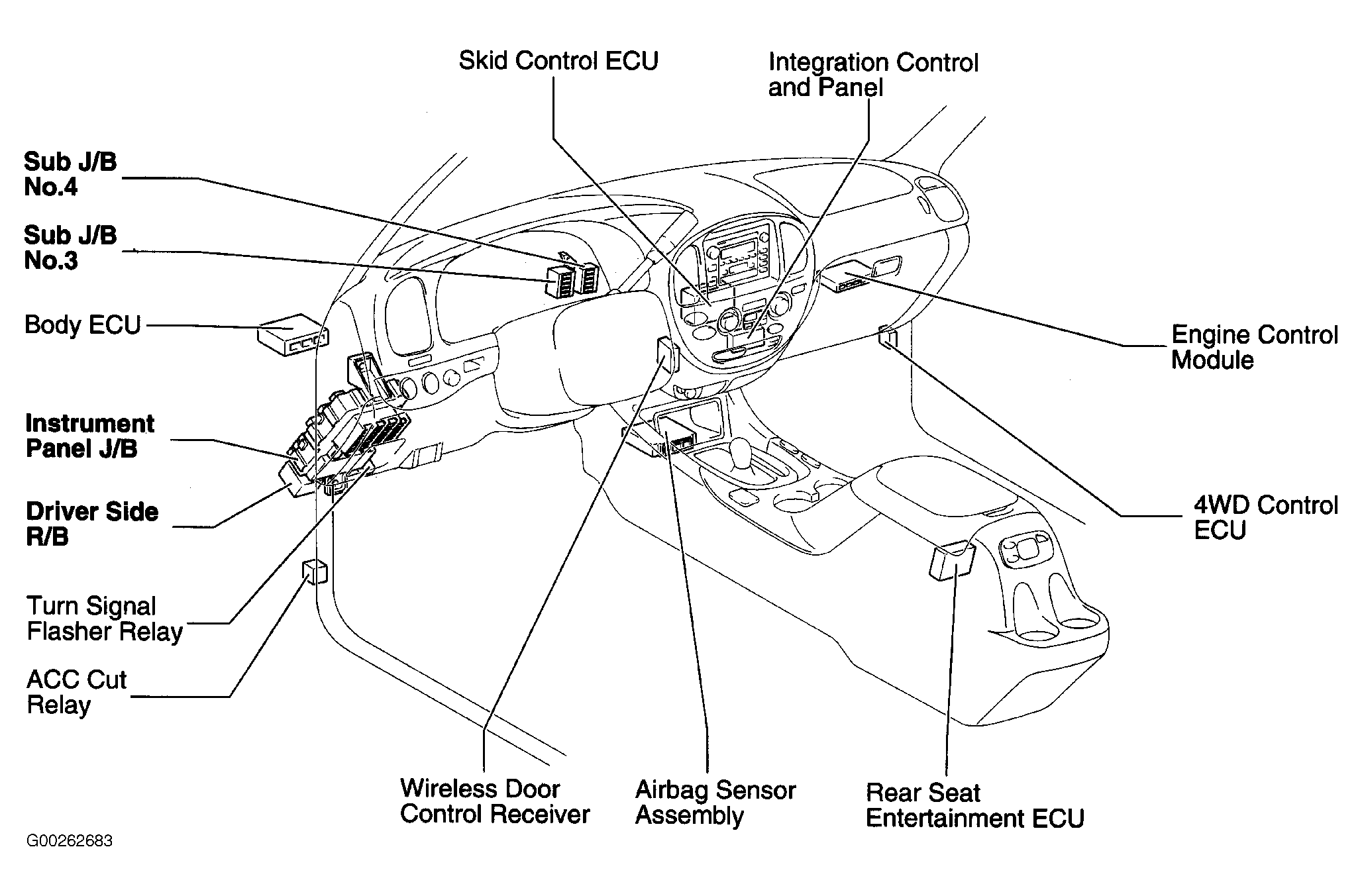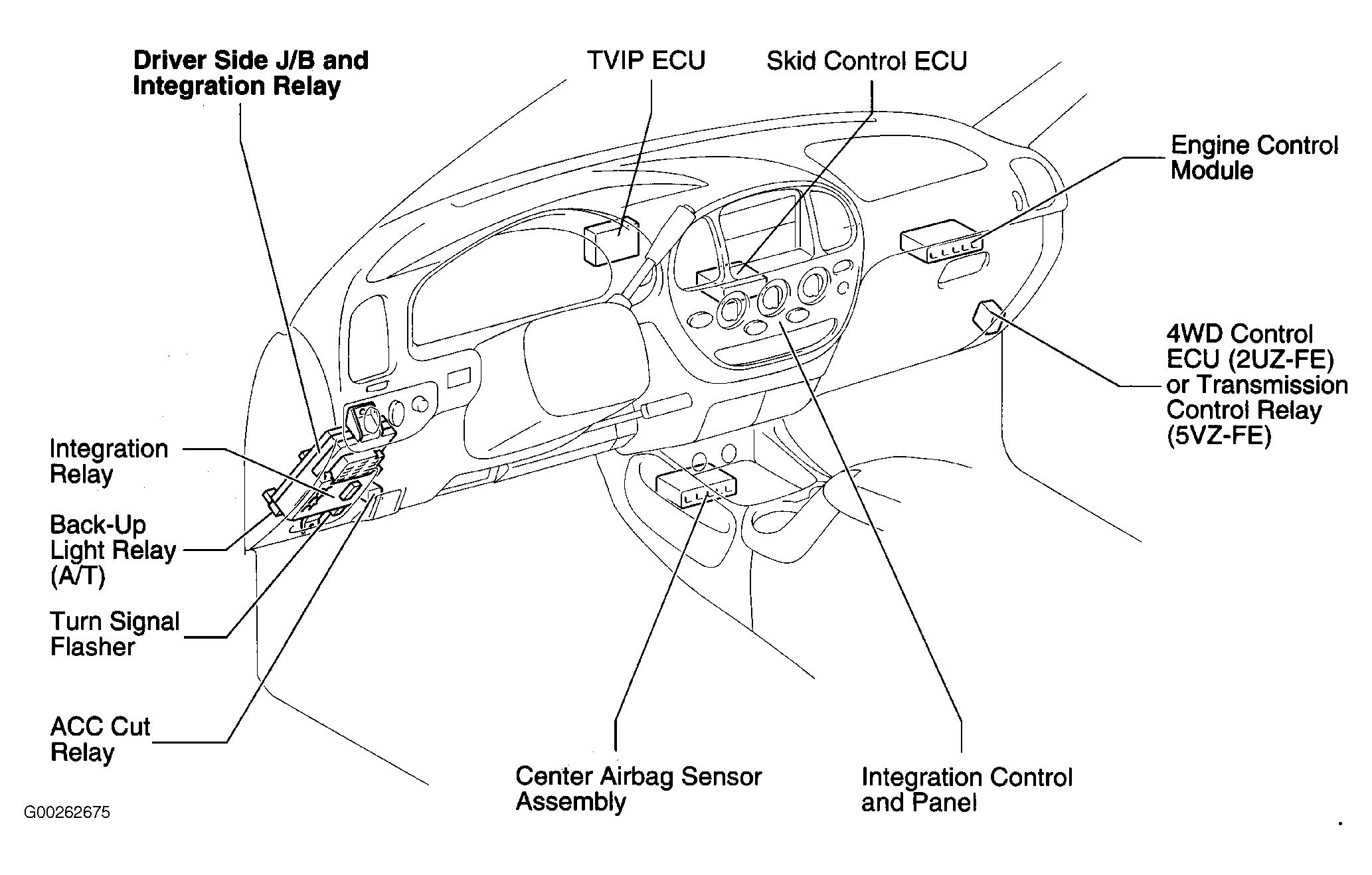 | Skid Control ECU (Double Cab) | Behind center of dash. See Figure. |
