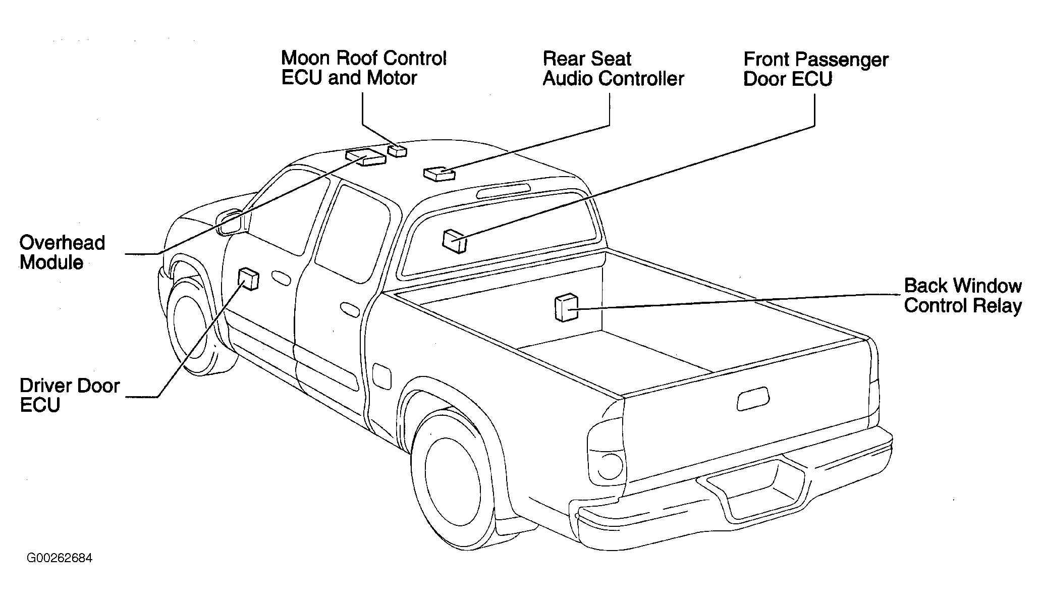 | Moon Roof Control ECU & Motor (Double Cab) | At center front of roof. See Figure. |