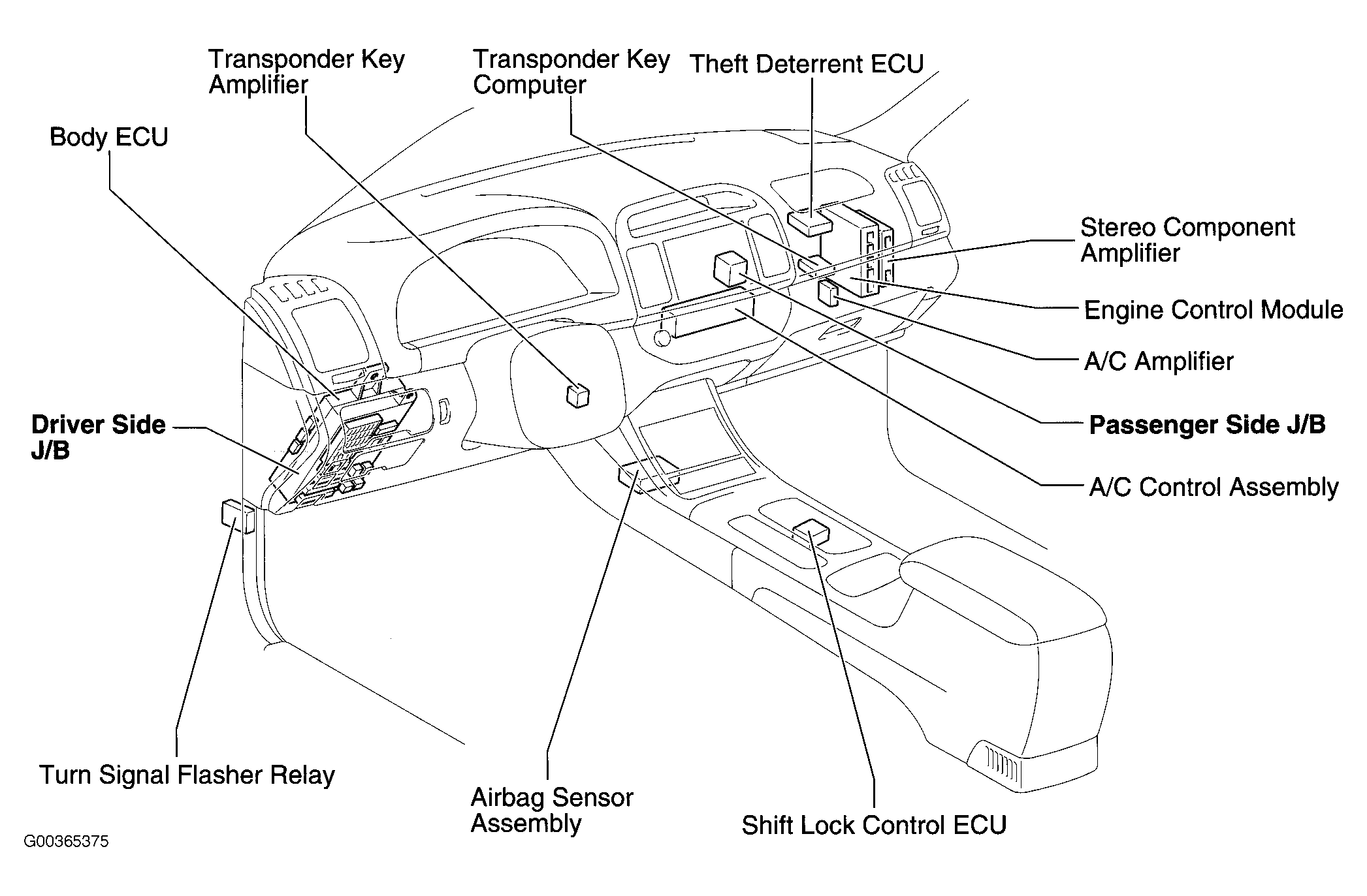 | Body ECU | Attached to driver side J/B. See Figure. |