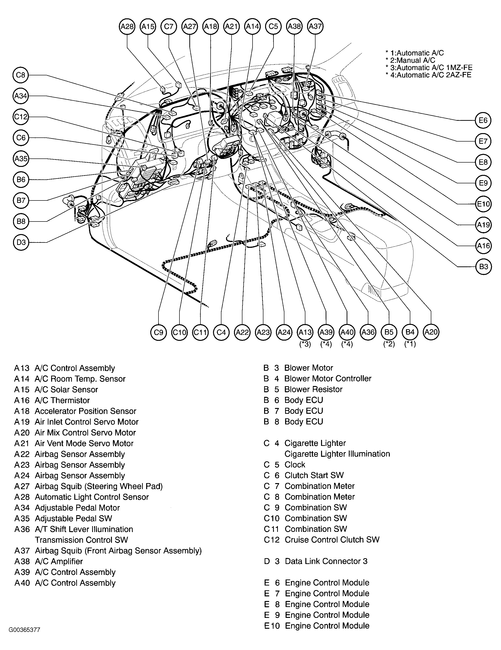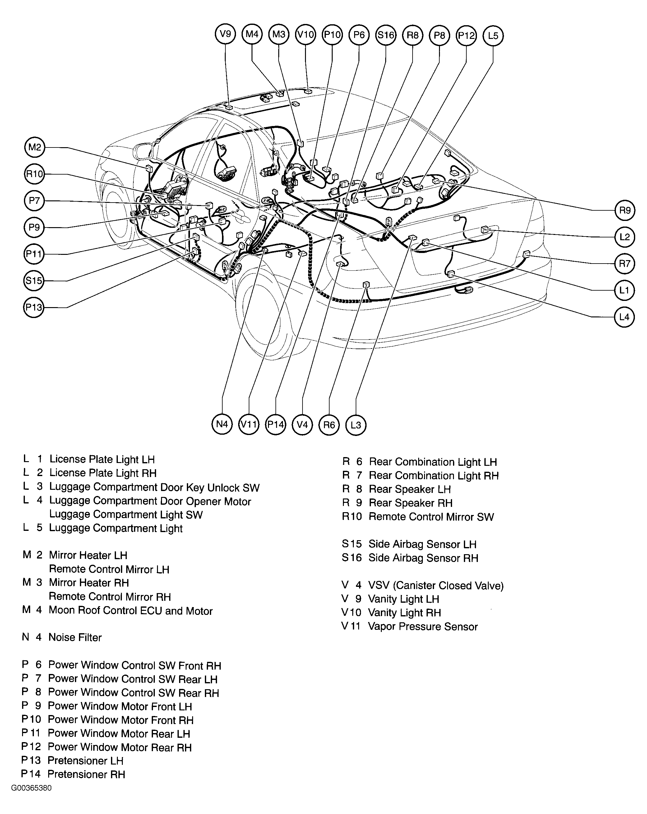 | Moon Roof Control ECU & Motor | At center front of roof. See Figure. |