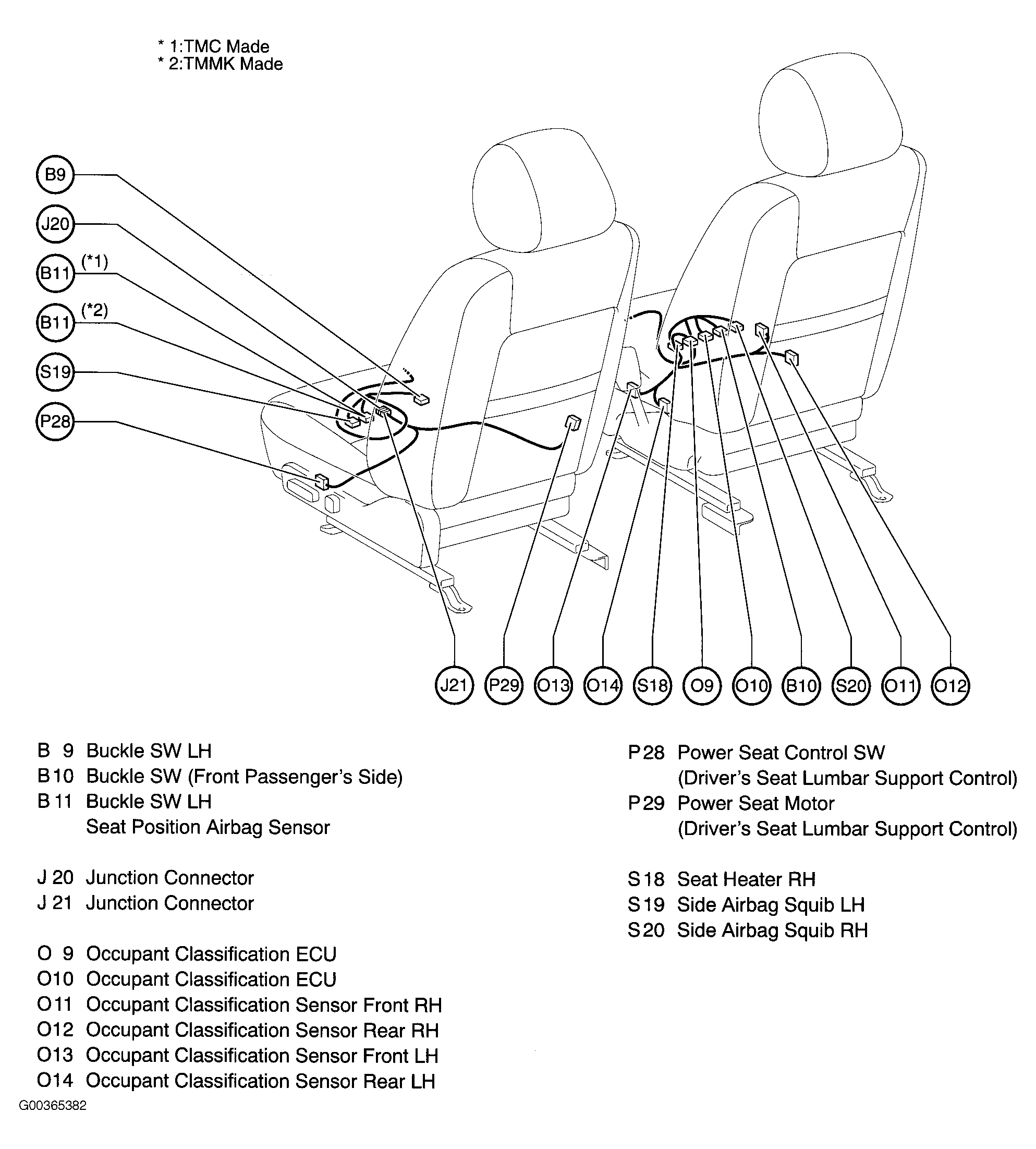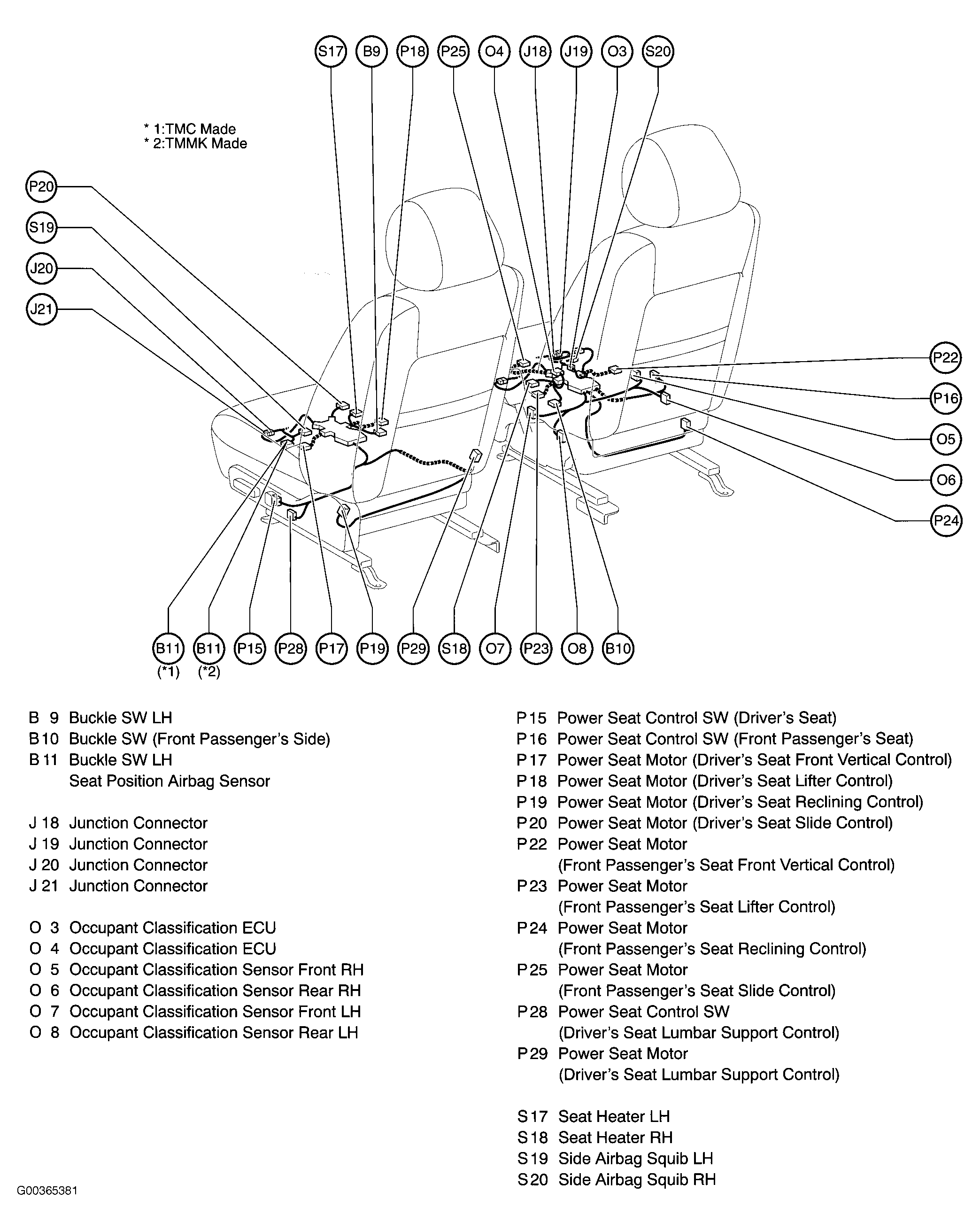 | Occupant Classification ECU (W/O Power Seats) | In front passenger's seat. See Figure. |