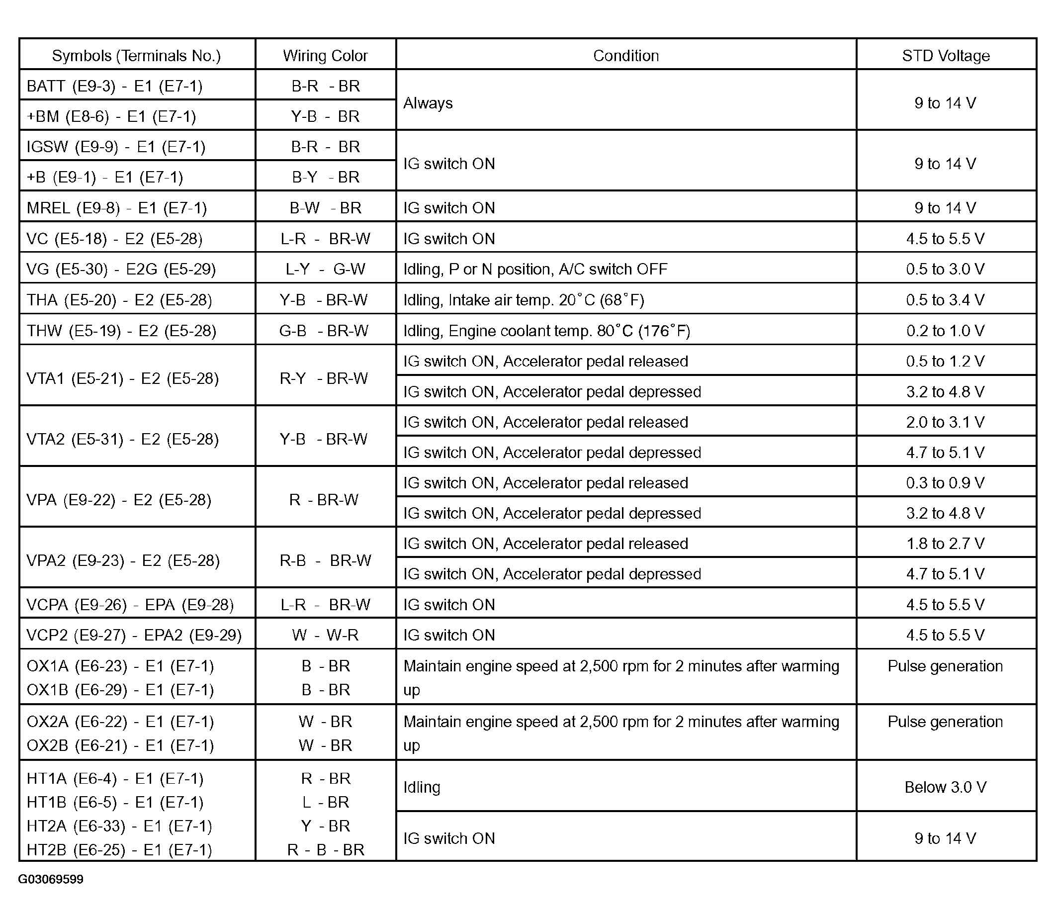 Each ECM terminals standard normal voltage is shown in Fig 2 . In the table, first follow the information under "Condition".