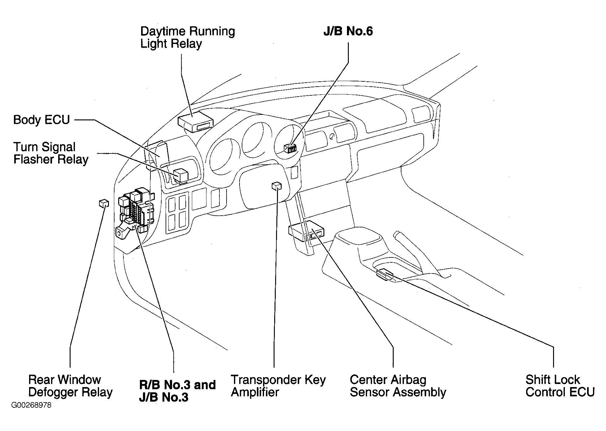 | Center Air Bag Sensor Assembly | Behind center of dash, forward of gear shifter. See Figure. |