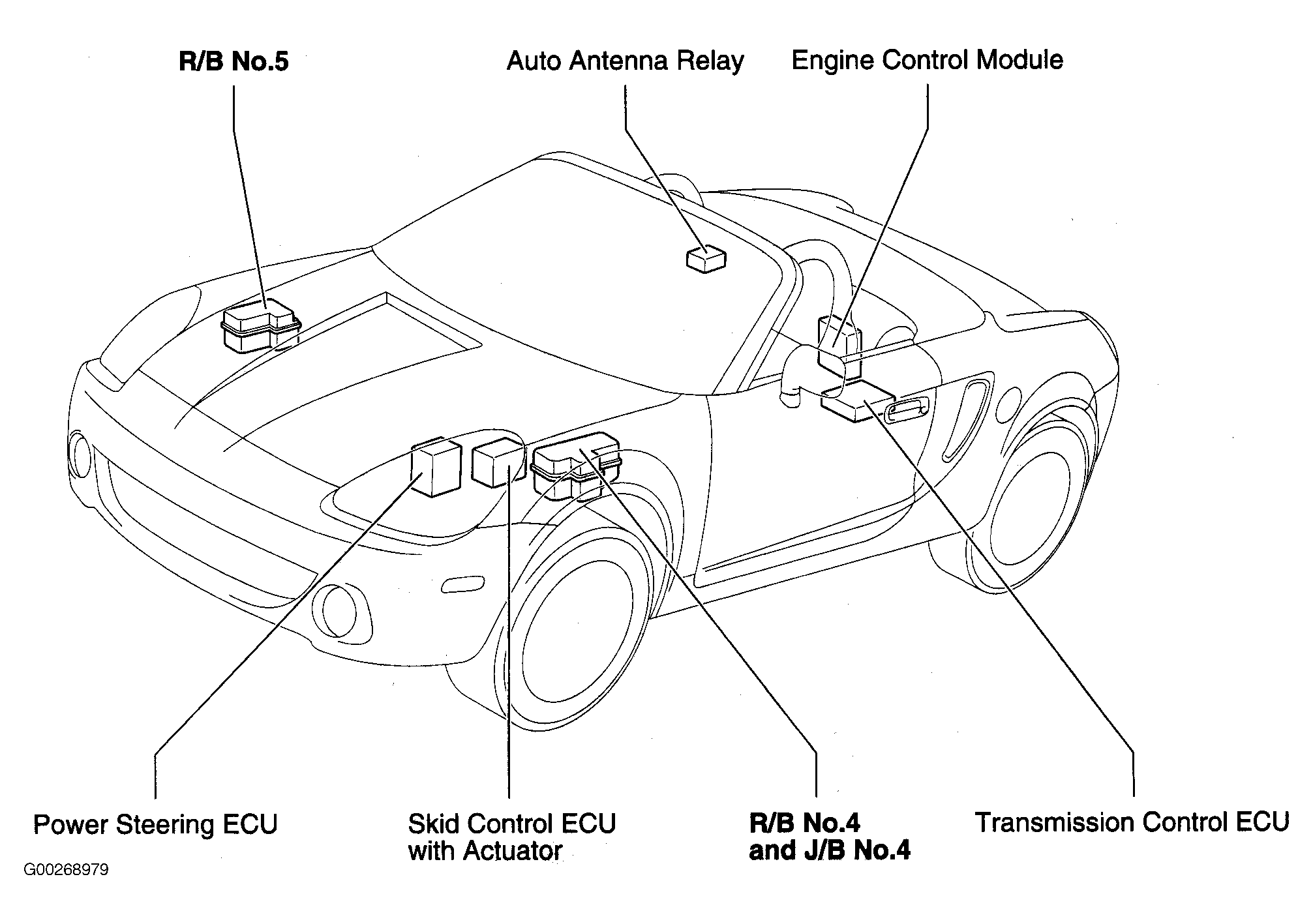 | Transmission Control ECU | Behind driver's seat, on panel. See Figure. |