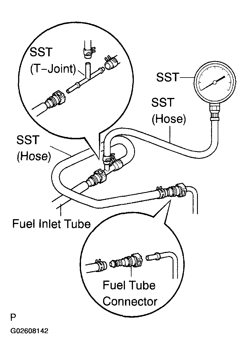 - Install SST (pressure gauge) using SST and a fuel tube connector as shown in Fig 4.