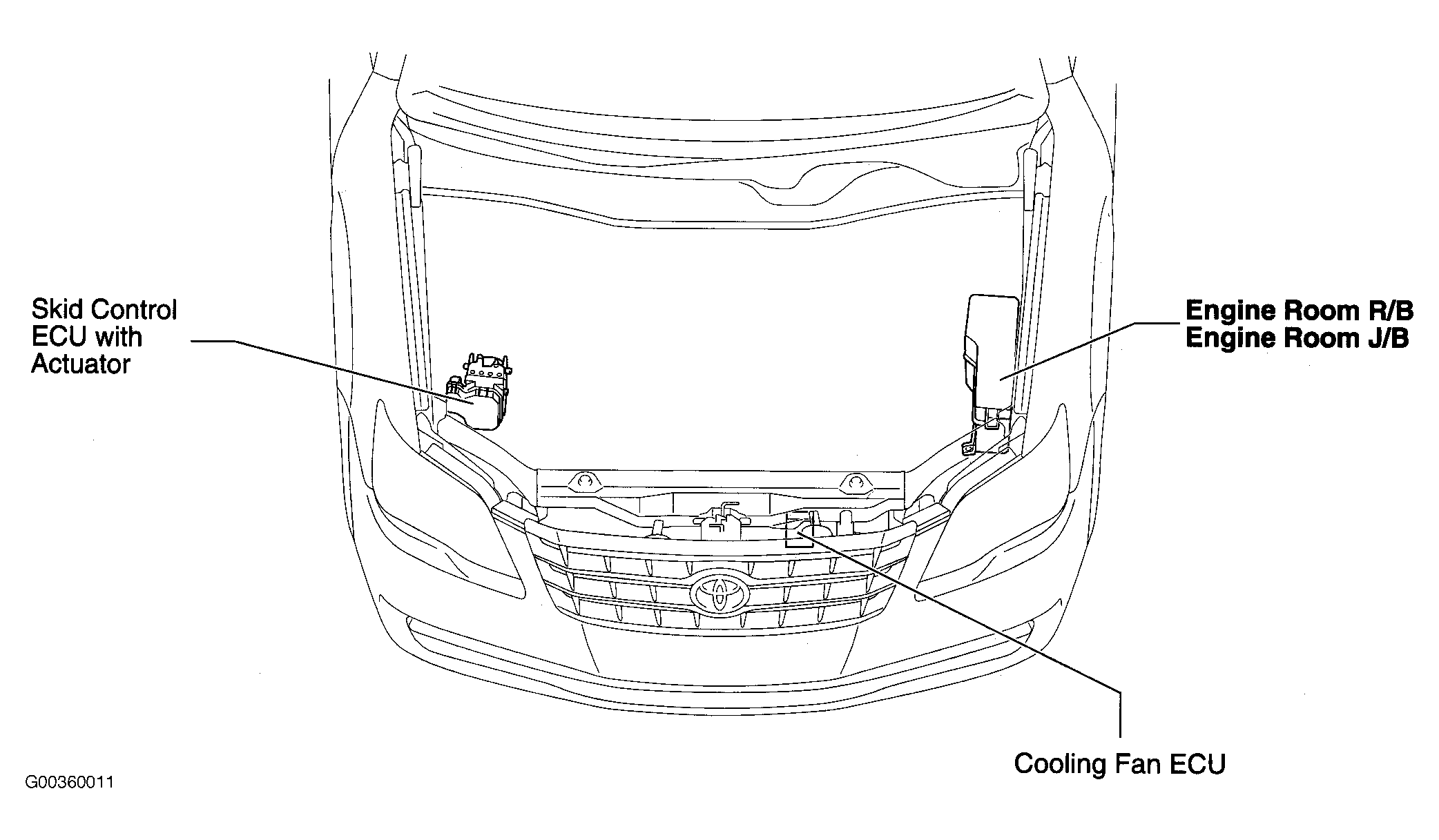 | Cooling Fan ECU | Front of engine compartment. See Figure. |