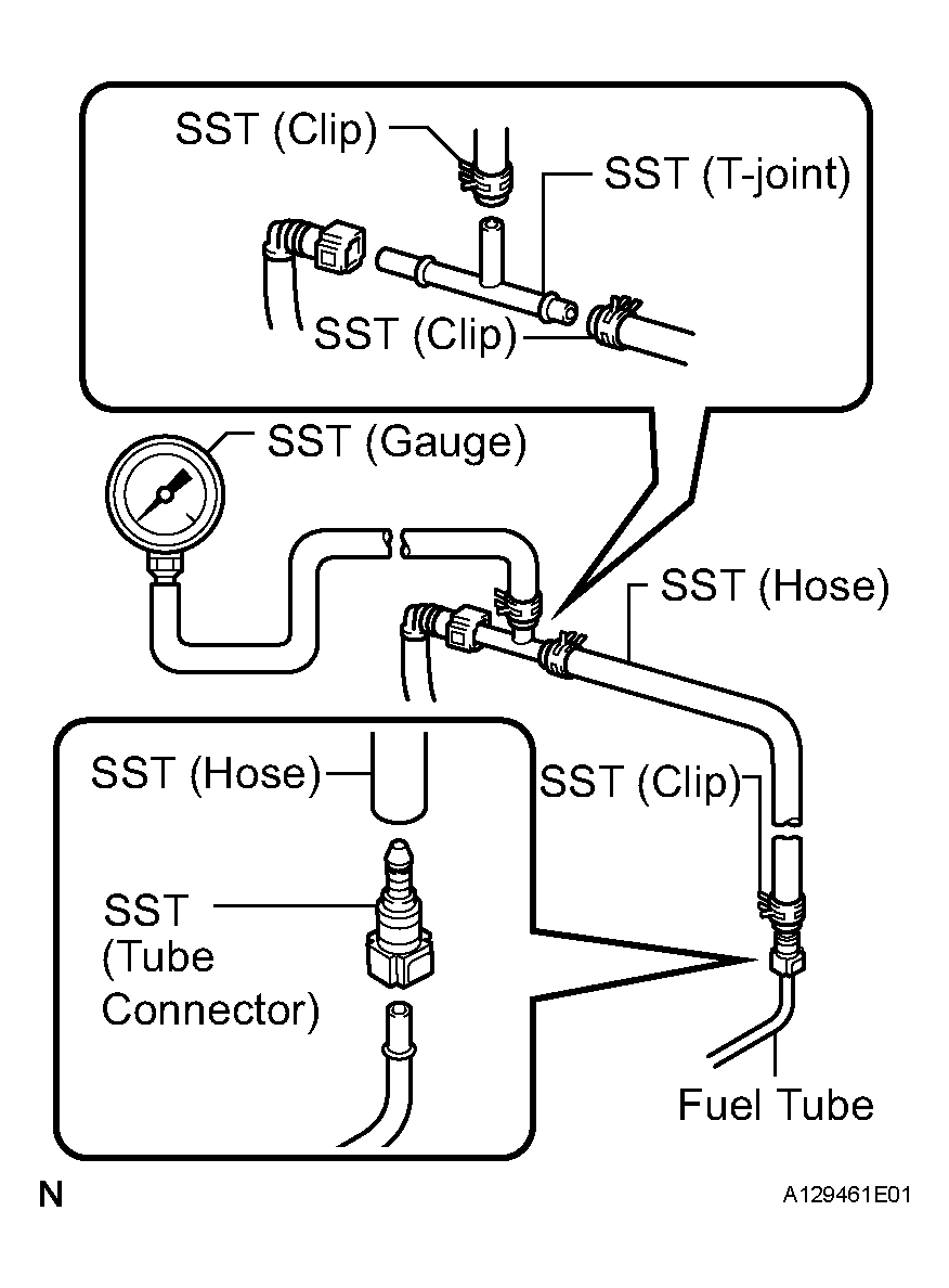- Install SST (pressure gauge) using SST and a fuel tube connector as shown in Fig 2.