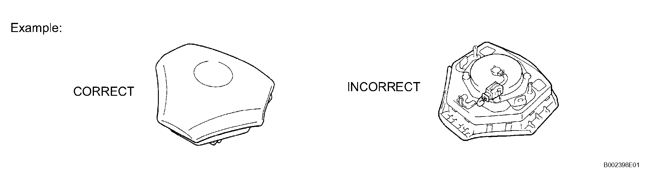 - When disposing of the vehicle or the horn button assembly by itself, the airbag should be deployed using SST before disposal. Activate the airbag in a safe place away from electrical noise.