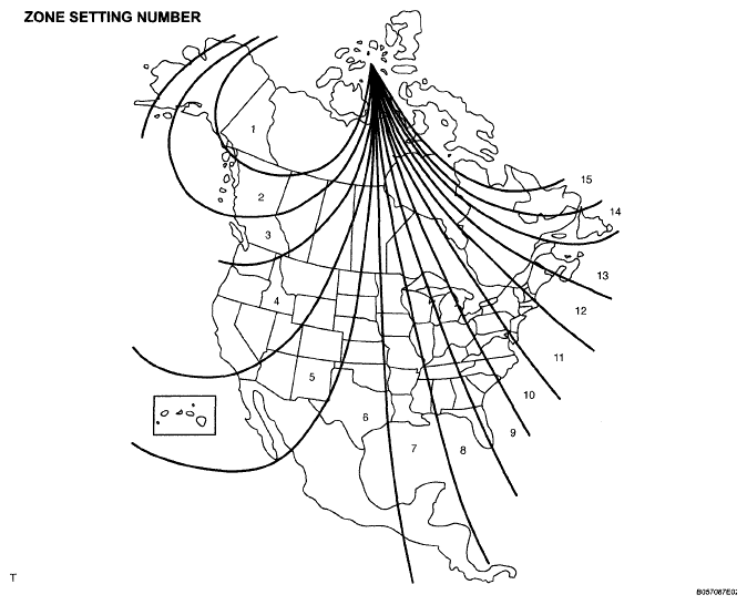 - The displayed number increases or decreases by 1 every time the right or left switch is pressed. On the map below, check the number for the area where the vehicle will be used and set the zone number.