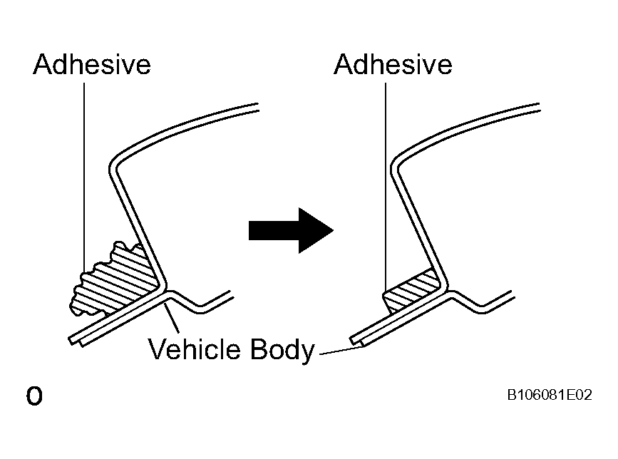 1. On the contact surface of the vehicle body, use a knife to cut away excess adhesive as shown in Fig 4.