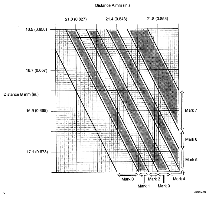 Make sure that when the B measurement and selected flange thickness are subtracted from the A measurement, the value is 2.20 to 2.50 mm (0.0866 to 0.0984 in.).