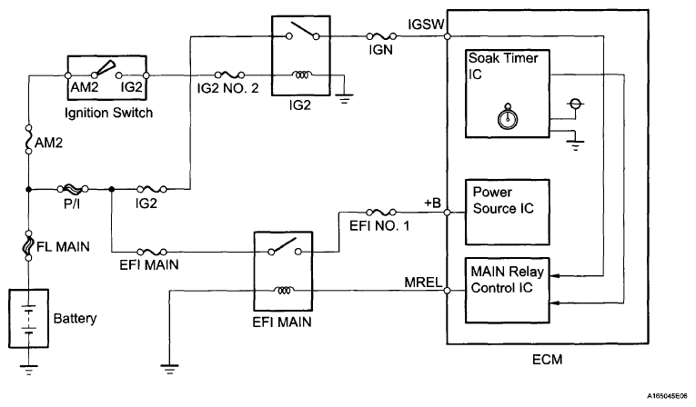 Soak timer Built into ECM. To ensure accurate EVAP monitor, measures 5 hours (+/-15 min.) after ignition switch turned to OFF. This allows fuel to cool down, stabilizing EVAP pressure. When approximately 5 hours elapsed, ECM activates (refer to Fig 6).