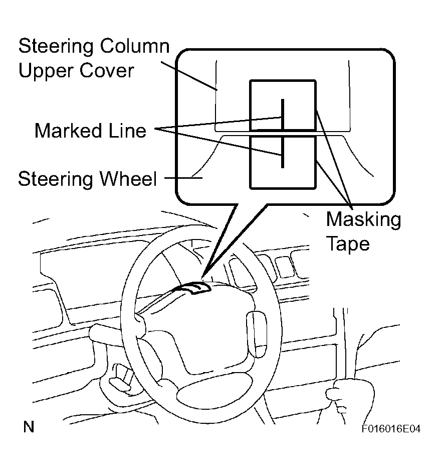 1. Apply masking tape on the top center of the steering wheel and steering column upper cover.
