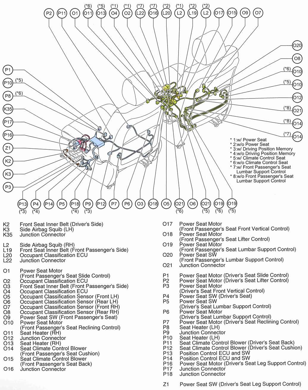 | Occupant Classification ECU | Front passenger's seat. See Figure. |