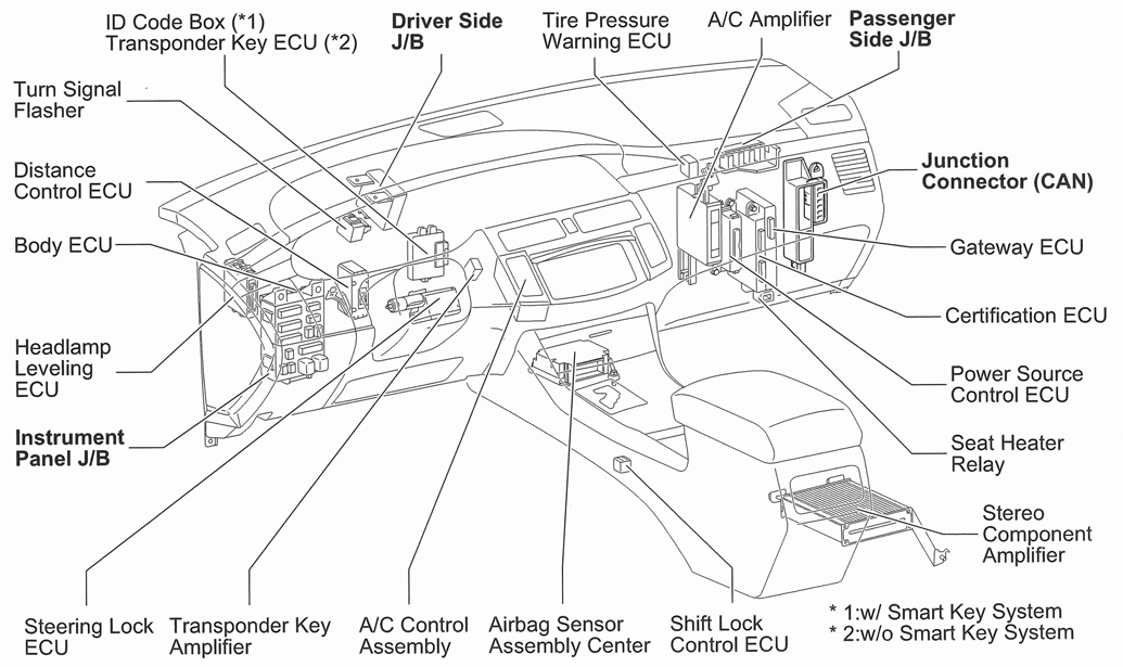 | Distance Control ECU | Behind left side of dash. See Figure. |