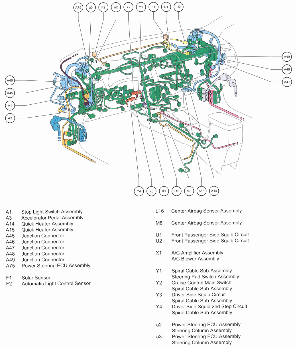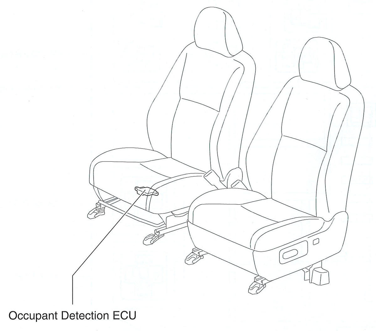 | Occupant Detection ECU | Under front passenger's seat. See Figure. |