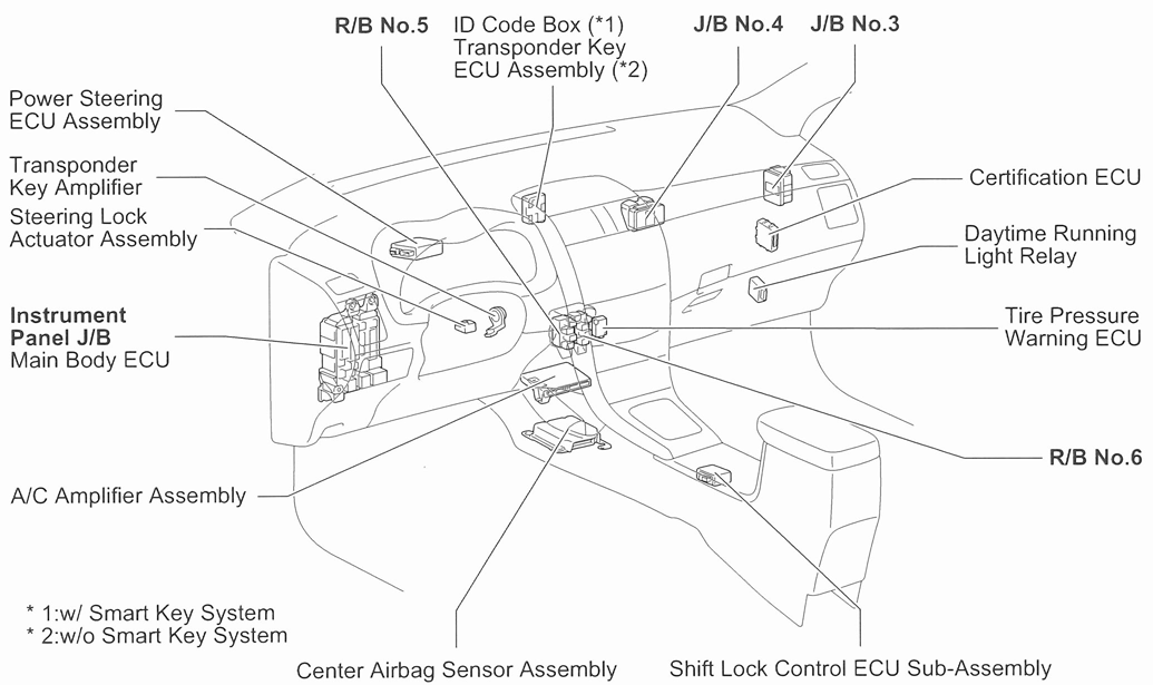 | Main Body ECU | Instrument panel J/B. See Figure. |